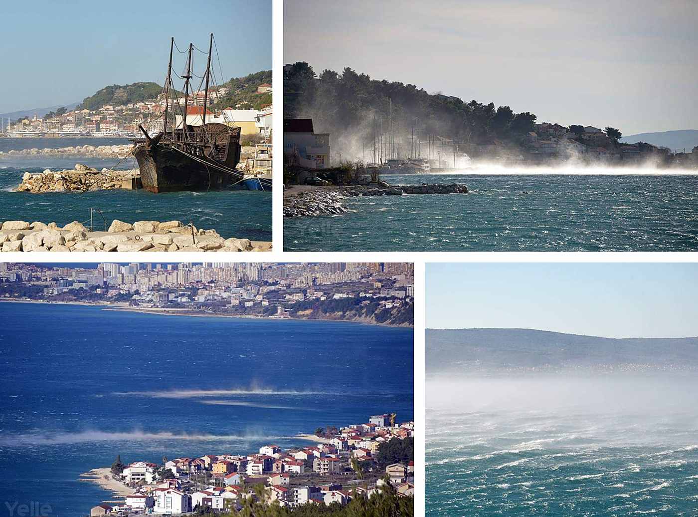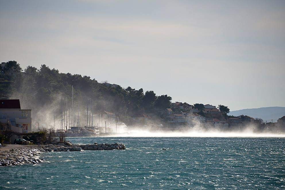Fotografkinja Jelena Bakotin snimila je moć bure i njene srkove na moru s nekoliko lokacija. Orkanski udari bure dizali su morsku prašinu do deset metara u zrak. Tako u atraktivnoj fotogaleriji možete vidjeti prizore iz Gornje Podstrane, Krila, Sumpetra i Dugog Rata.