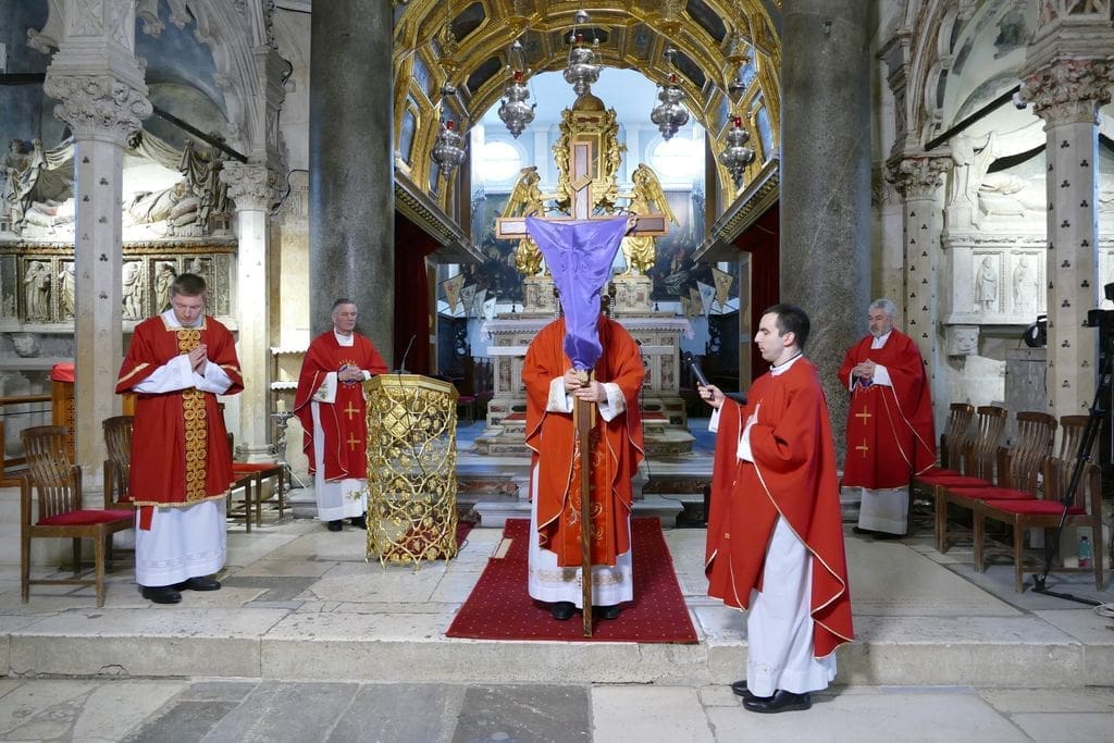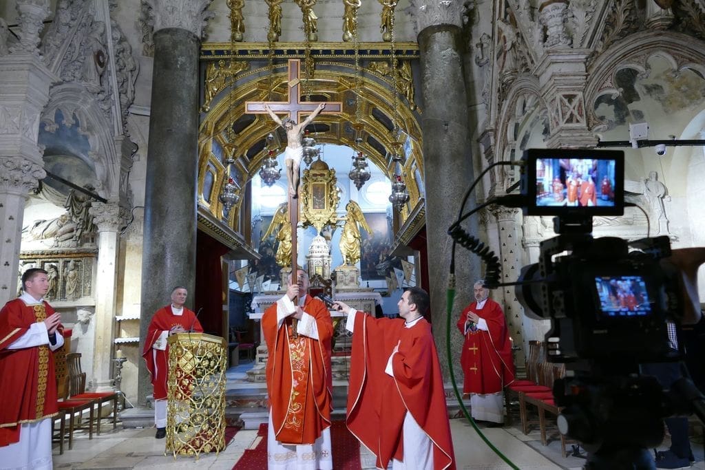 „Draga braćo i sestre, molim vas da stavite Raspelo na vaš stol. Ono je simbol Kristove ljubavi prema nama. Dok sada ovdje budemo otkrivali križ volio bih da ga i vi otkrijete i poljubite u svojim obiteljima. Na današnji dan je život za raspetog i uskrslog Krista darovao i zaštitnik naše Nadbiskupije sveti Dujam. Poklonimo se s njim u vjeri, nadi i ljubavi Kristu koji je svojim svetim križem otkupio svijet“, zaključio je.