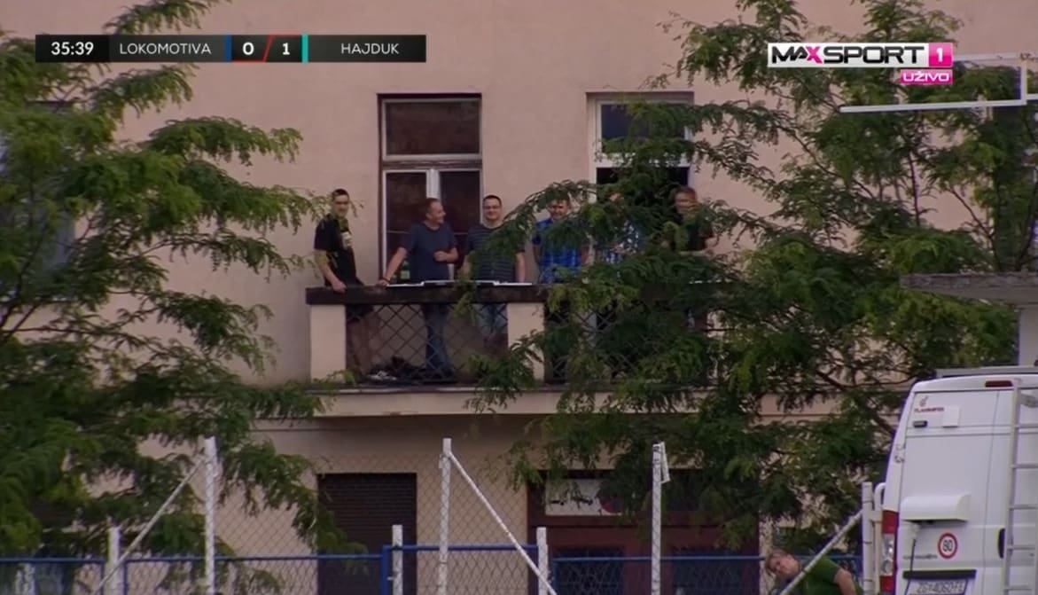 Navijači Lokomotive prate susret s balkona, a komentator ih je nazvao "Balkon Boysi". Nije prvi put da se HNL utakmice prate izvan tribina stadiona.