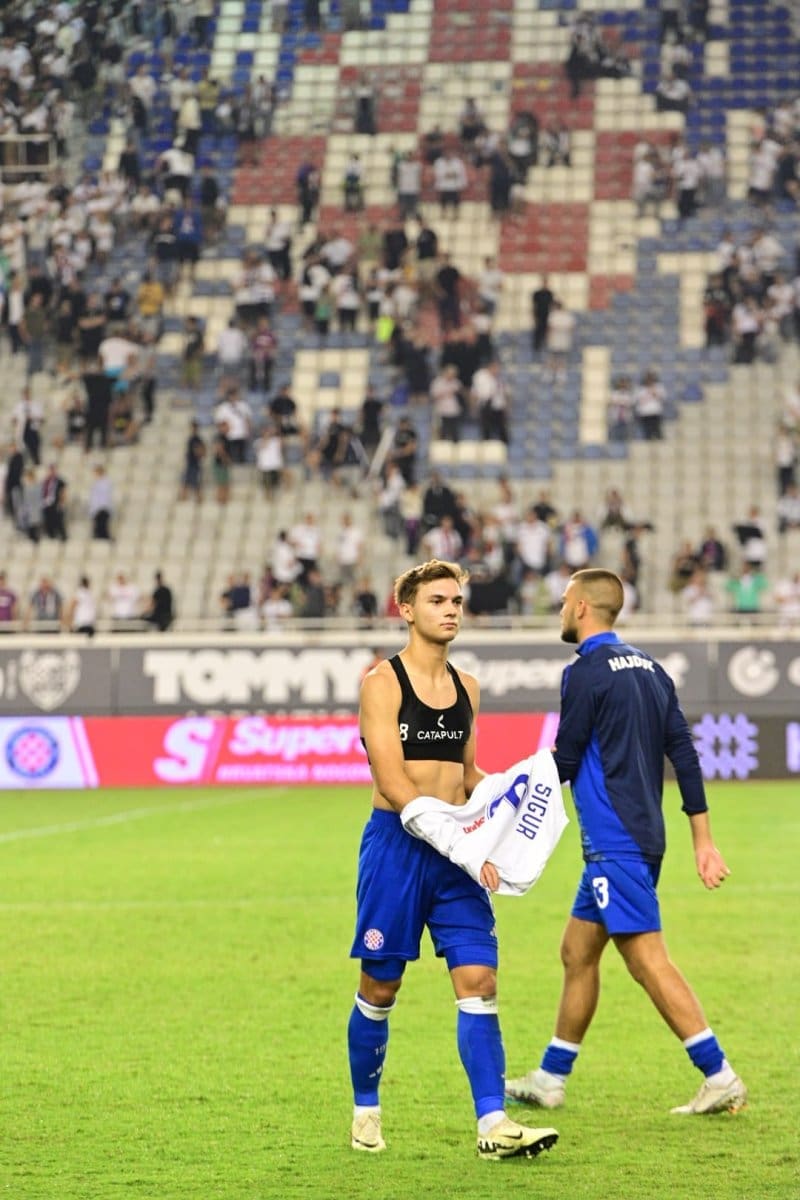 Torcida je zajedno s istokom i zapadom igrače ispratila uz pjesmom "Neka, neka, nek' se zna", a potom i uzvicima "Niko kao Hajduk iz Splita!"