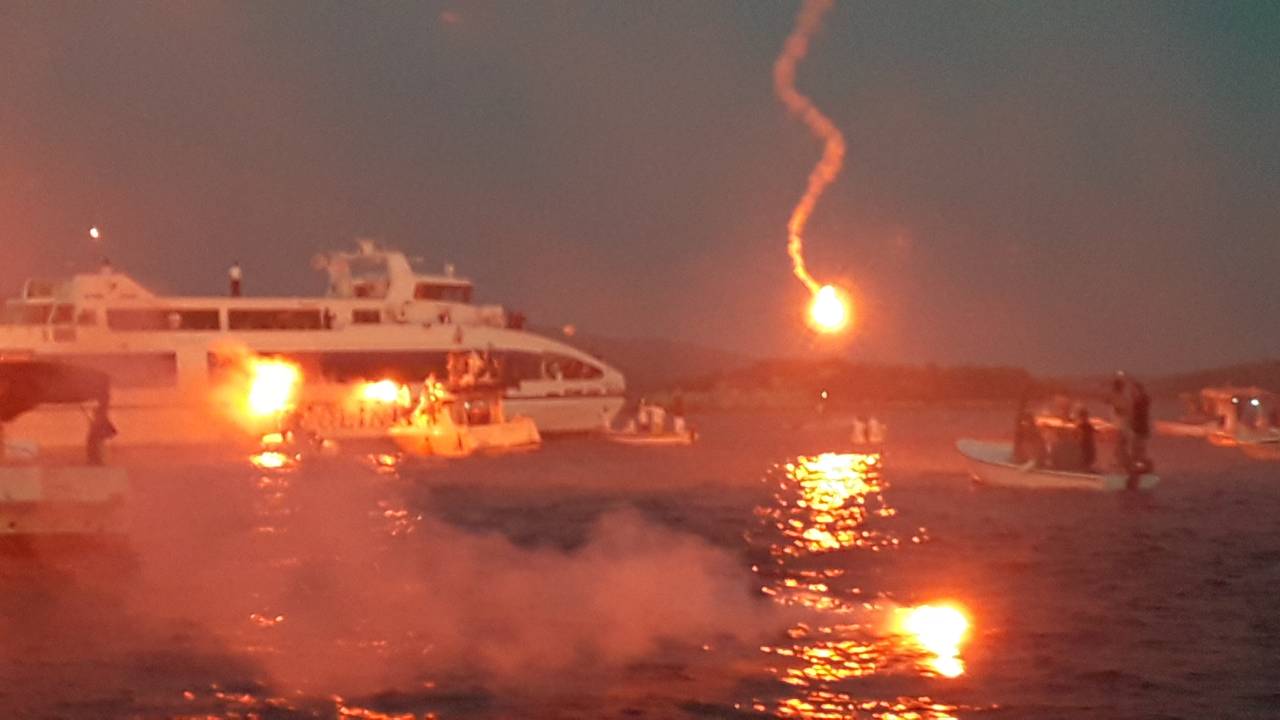 Brodice i baklje dočekale su katamaran prvo na splitskim vratima, a istočni dijelovi Šolte odali su počast legendi. Sljedeća točka organiziranog odavanja počasti bila je Hvar gdje se također skupilo puno ljudi da bakljama, pjesmom i sirenama odaju počast Oliveru, a petnaestak minuta iza 22 sata katamaran je stigao na svoje konačno odredište - Velu Luku na Korčuli gdje se okupio vjerojatno rekordan broj ljudi.