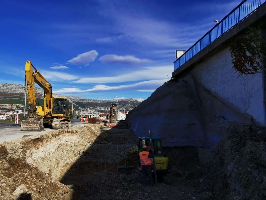 Gradilište je zahtjevno samo po sebi, a unatoč obilnim padalinama tijekom studenog, koje posebno usporavaju radove iskopa u geotehnički nepovoljnom materijalu uz koje se paralelno izvode radovi privremene zaštite građevinske jame i kolnika koji je u prometu, izvođač radova, zajednica ponuditelja COLAS Hrvatska d.d. i DEGAL TEHNIKA d.o.o., uspješno izvodi radove sukladno planiranoj dinamici.
