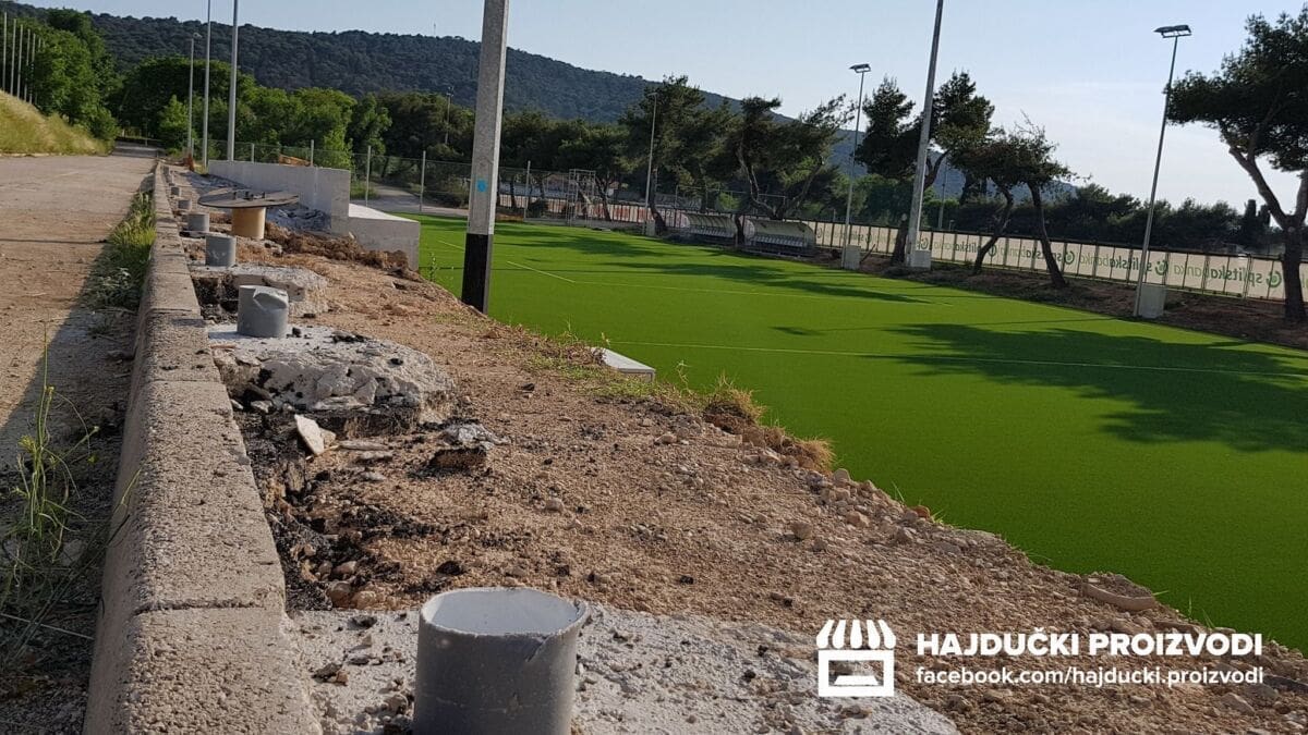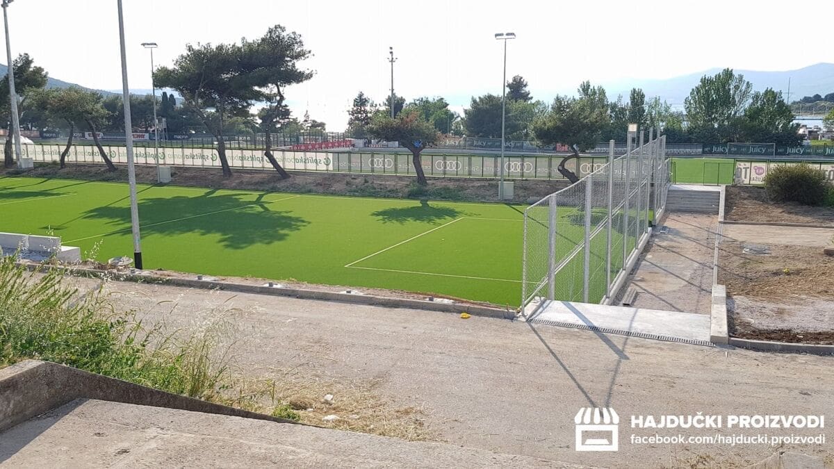 Facebook stranica "Hajdučki proizvodi" javlja da je dovršeno postavljene ograda oko pomoćnih Hajdukovih terena na Poljuda. Ističu da se dovršavaju mini tribine kao i ograde s te strane, a gotovi su i grubi radovi za prolaz od platoa Poljuda do pomoćnih terena.