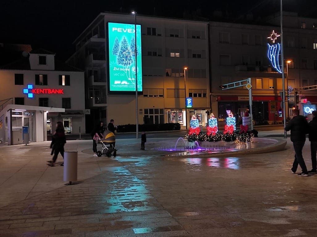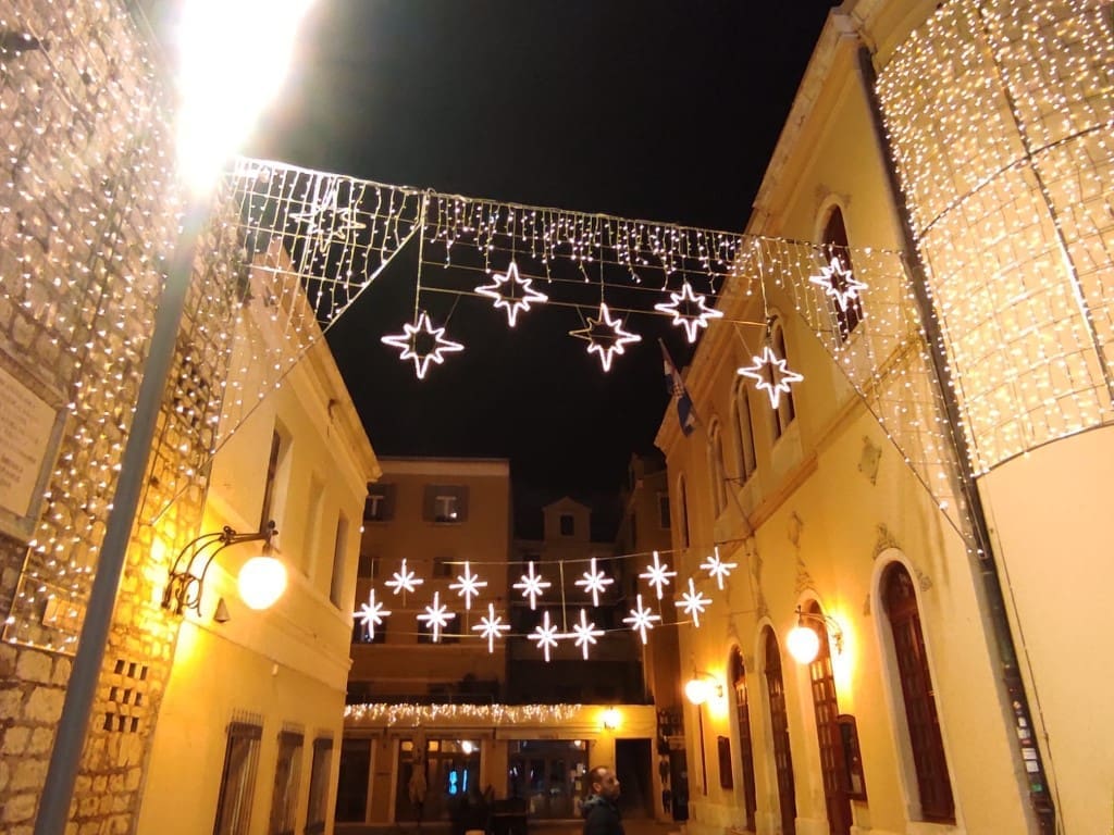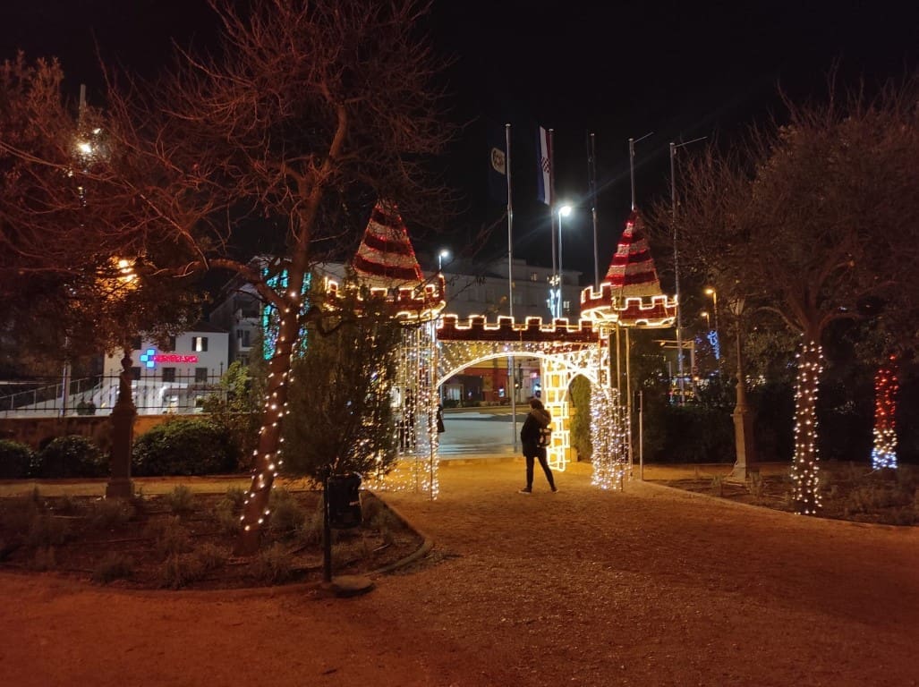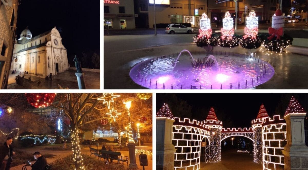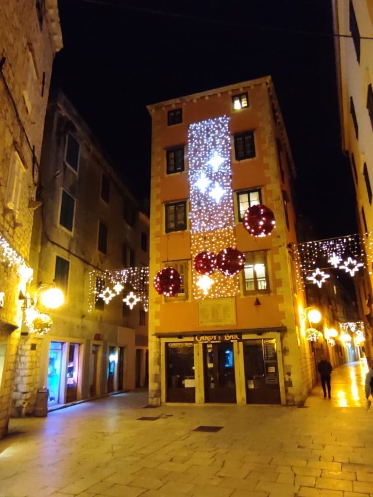 Napravili smo noćni đir po okićenom Šibeniku. Nema prevelike gužve, što možemo zahvaliti epidmiološkim mjerama, no barem je ugođaj božićni zahvaljujući ukrasima.