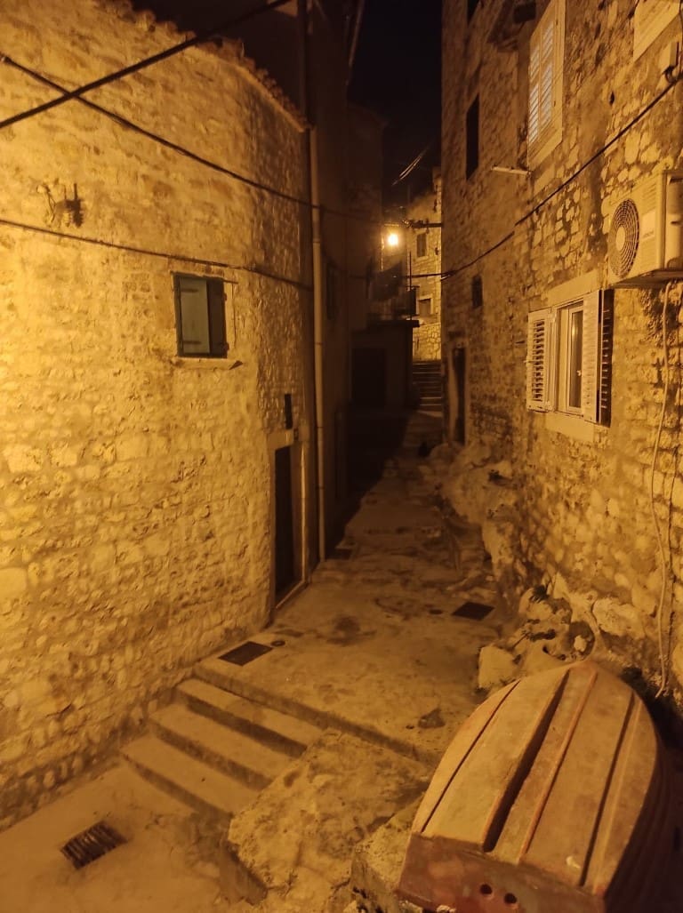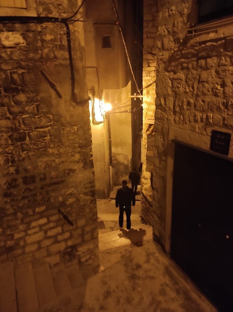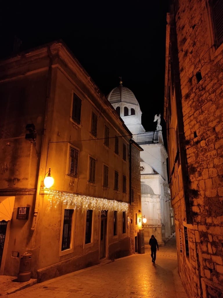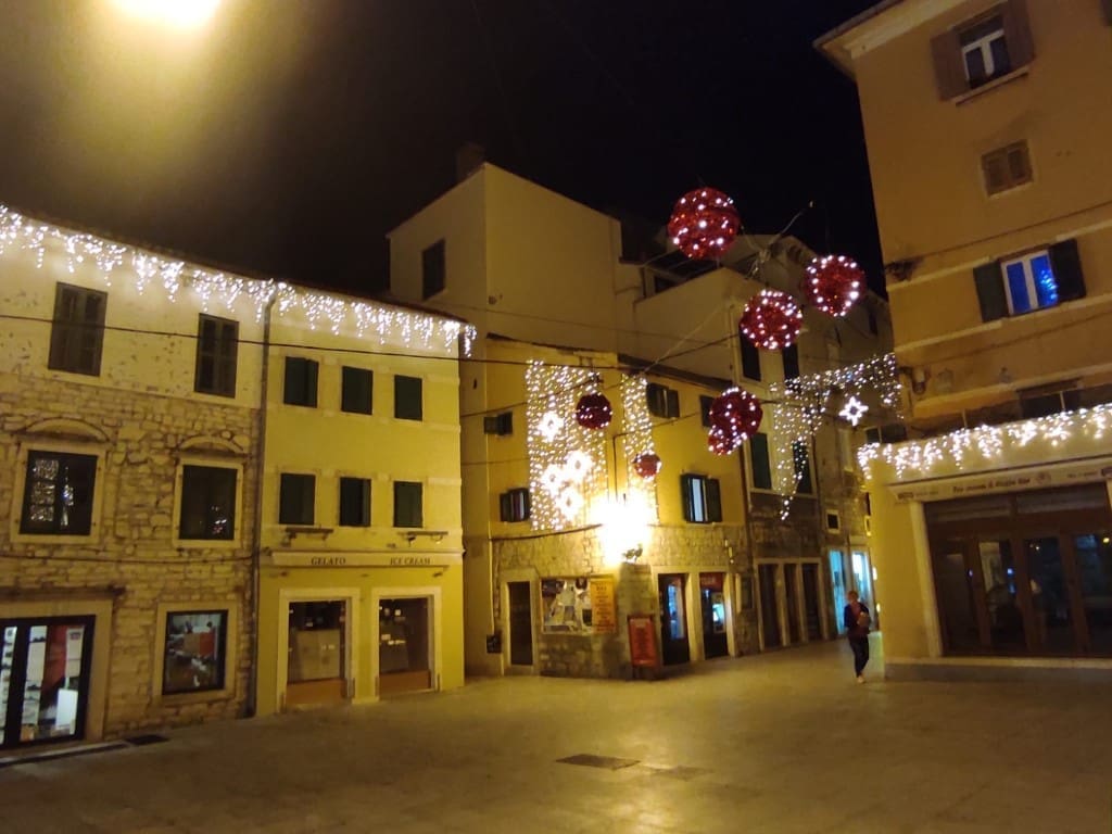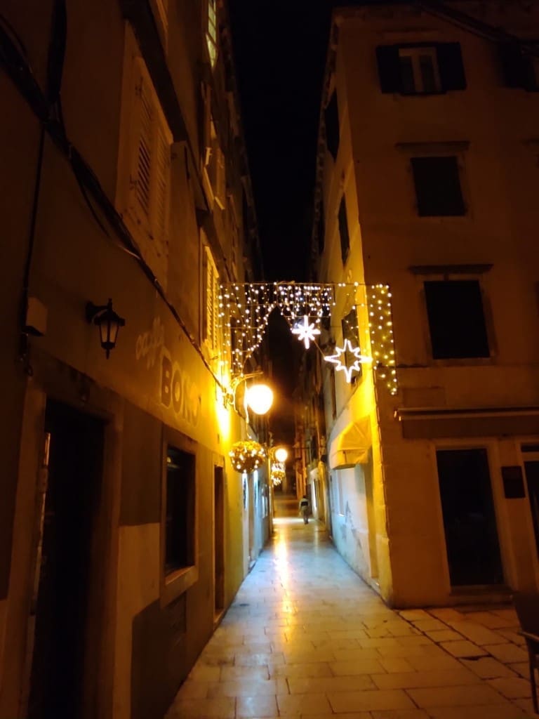 Napravili smo noćni đir po okićenom Šibeniku. Nema prevelike gužve, što možemo zahvaliti epidmiološkim mjerama, no barem je ugođaj božićni zahvaljujući ukrasima.