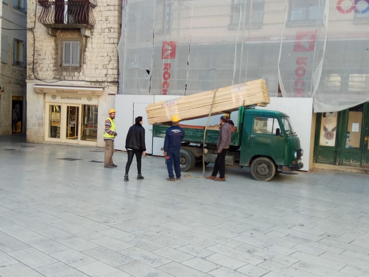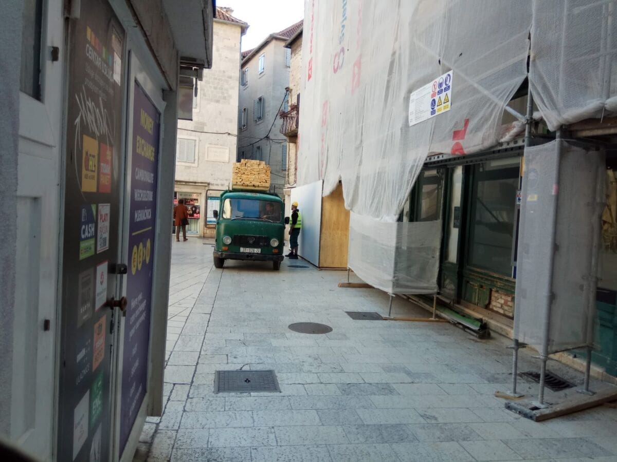 Na Pjaci se obnavlja pročelje zgrade unutar koja se nalazi i bivša knjižara Naprijed. Kako javljaju naši čitatelji, danas su radnici betonom "fugirali" kamene ploče na mjestu gdje se posljednjih nekoliko dana kamionima obavljao istovar.