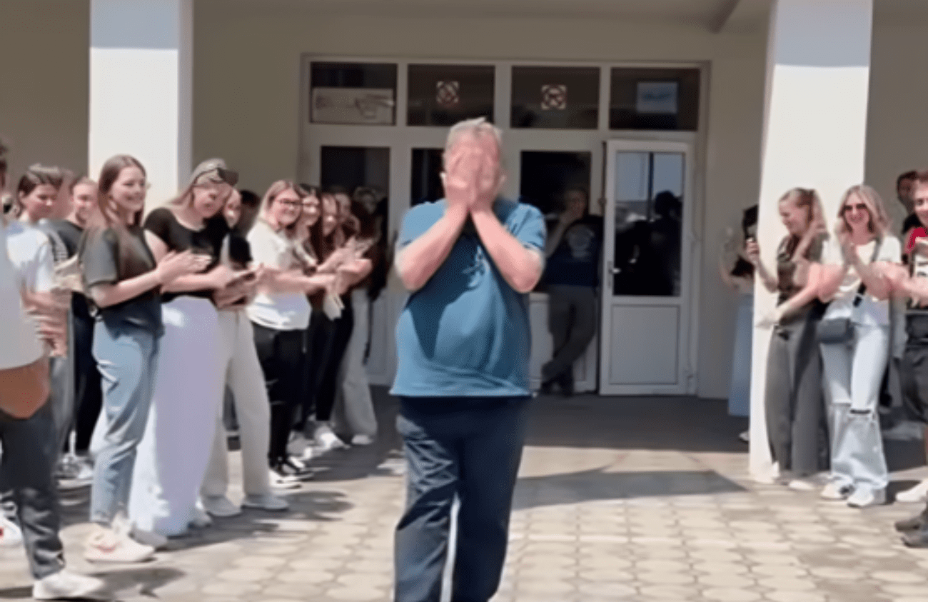 Učenici su se okupili na ulazu škole, a dok je profesor izlazio iz škole, pljeskali su mu. Vidno emotivan profesor jedva je zadržao suze. Pogledajte video.