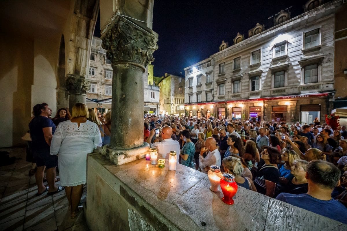 U spomen na velikana sinoć su se Splićani spontano okupili na Pjaci i zapjevali Oliverove pjesme do dugo u noć. Kako je ovaj trenutak nabijen snažnim emocijama protekao pogledajte u fotogaleriji Zvonimira Barišina.
