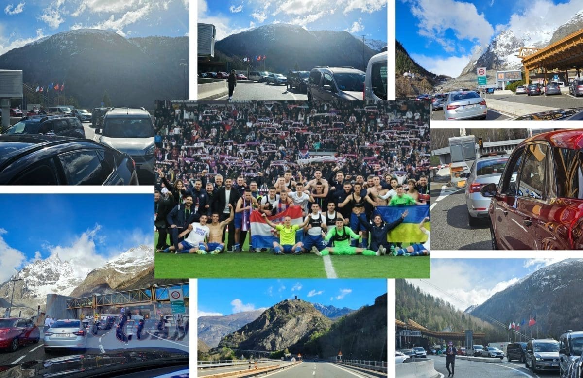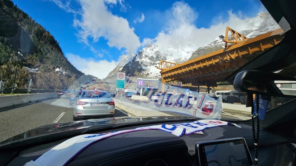 Kroz tunel Mont Blanc poslijednjih danas su prošle rijeke i rijeke navijača Hajdukovih juniora, a neki tek čekaju na prolazak kroz njega. Kilometarske kolone vozila hrvatskih registarskih oznaka stvaraju se pred tunelom, a vozači i ostali putnici su u dobrom raspoloženju. Kako nam javlja naš čitatelj, vrijeme čekanja prolaska kroz tunel se krati hajdučkim pjesmama.