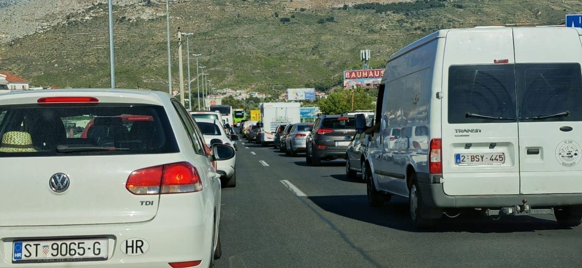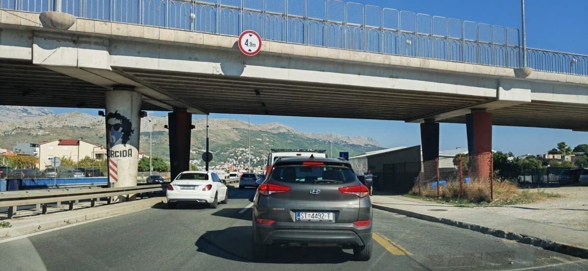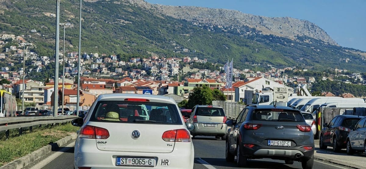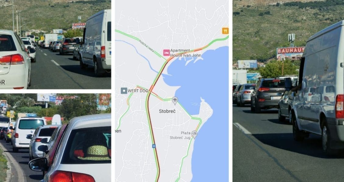 Kolona automobila pomoče se jako sporo niz Sirobuju, prema Stobreču. Gužva počinje već kod mosta na Sirobuji.