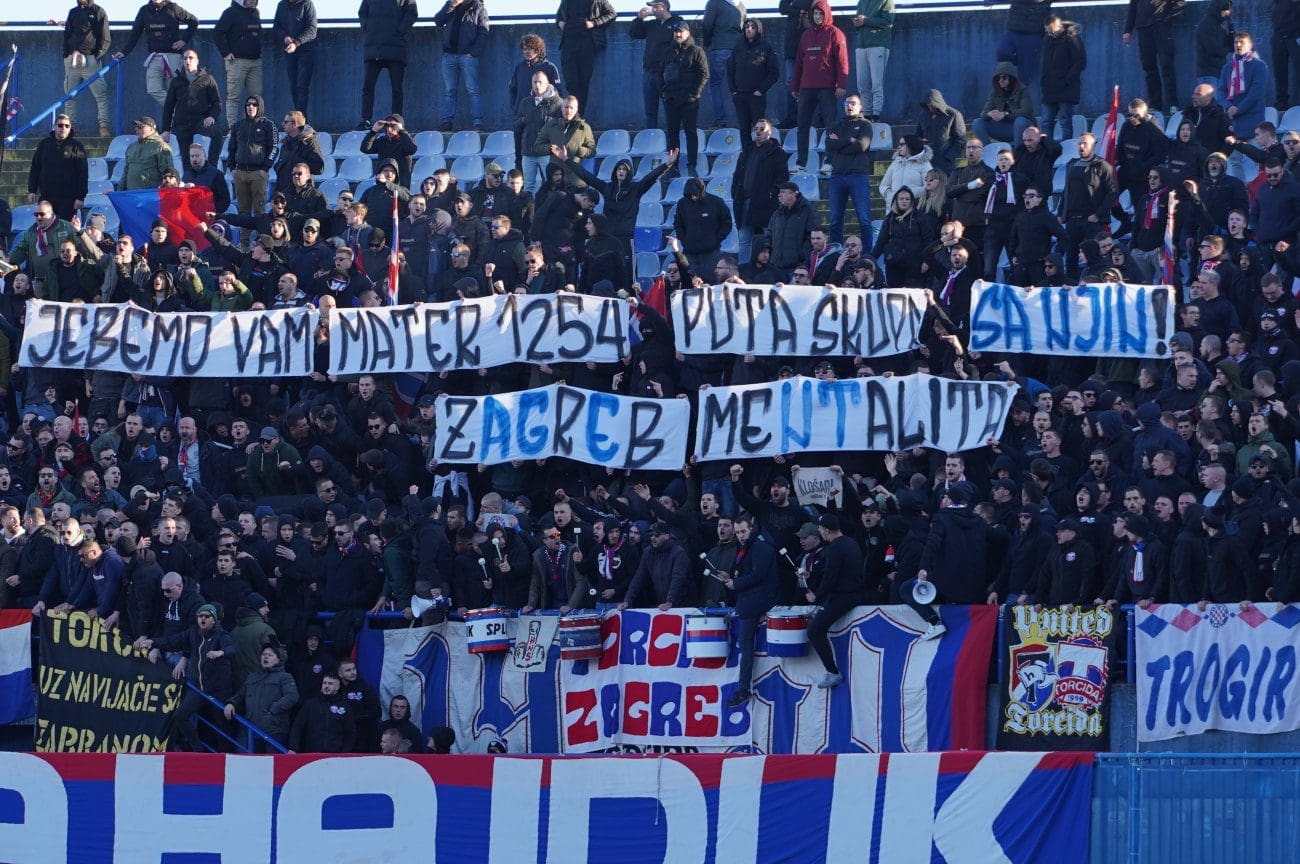 U 63. minuti Torcida je istaknula poruku: "JEBEMO VAM MATER 1254 PUTA SKUPA SANJIN / ZAGREB MENTALITET". Sanjin i grafemi AGENT iz Zagreb mentalitet bili su napisani plavom, aludirajući na Sanjina Strukića koji je, ustaljenom frazom od navijača postao agent.