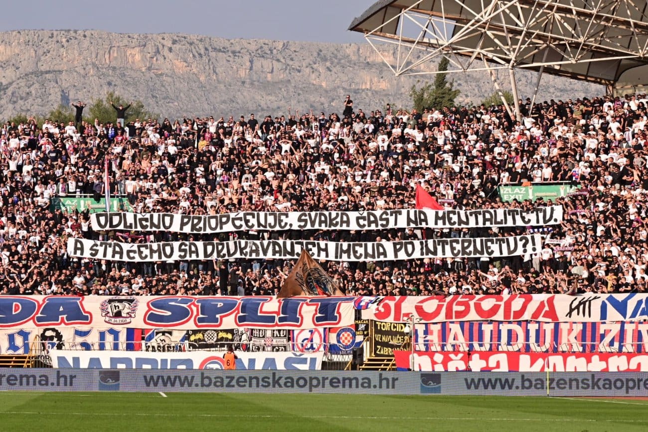 Torcida je uoči utakmice izvjesila transparent s porukom: „Iz podruma Firula urlamo iz sveg glasa. Volimo Bijele i nema nam spasa.“ Podrum splitske bolnice odnosi se na odjel psihijatrije.