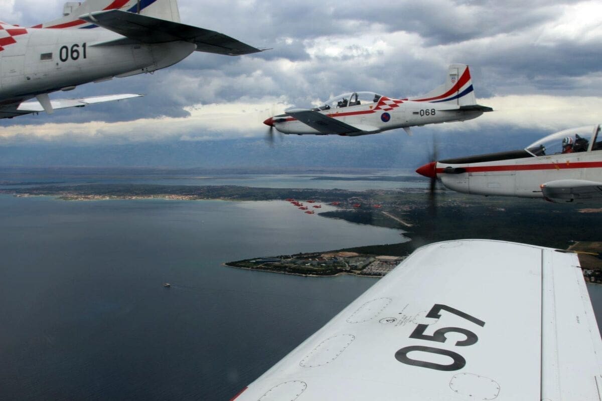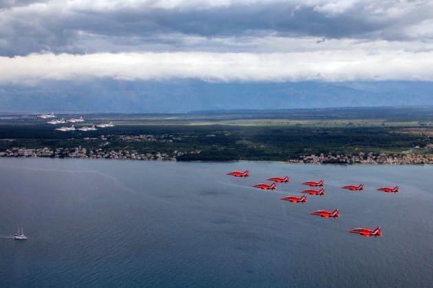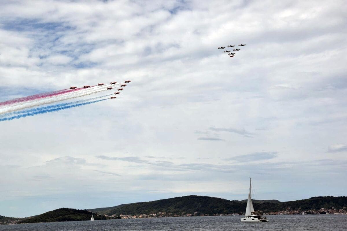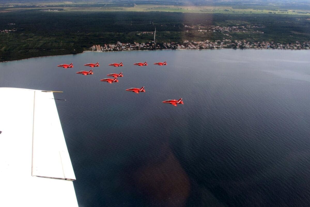 - Naše drage kolege i prijatelje ovoga puta dočekali smo i pozdravili u zraku iznad hrvatske obale. Uživali smo u preletu i impresivnoj slici zajedničkog preleta punog sastava hrvatske i britanske akrobatske grupe na nebu od Biograda na moru pa sve do Zadra, a ovakav prelet po prvi puta je organiziran u Hrvatskoj. Za sve nas ovo je bilo jedno novo iskustvo, a primili smo i zahvalu cijelog tima "Red Arrowsa" koji su bili oduševljeni dočekom i zajedničkim letom - iznio je satnik Belančić.