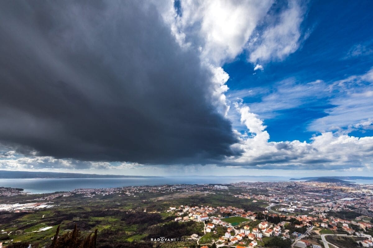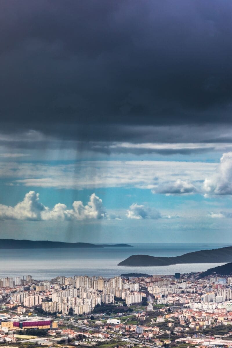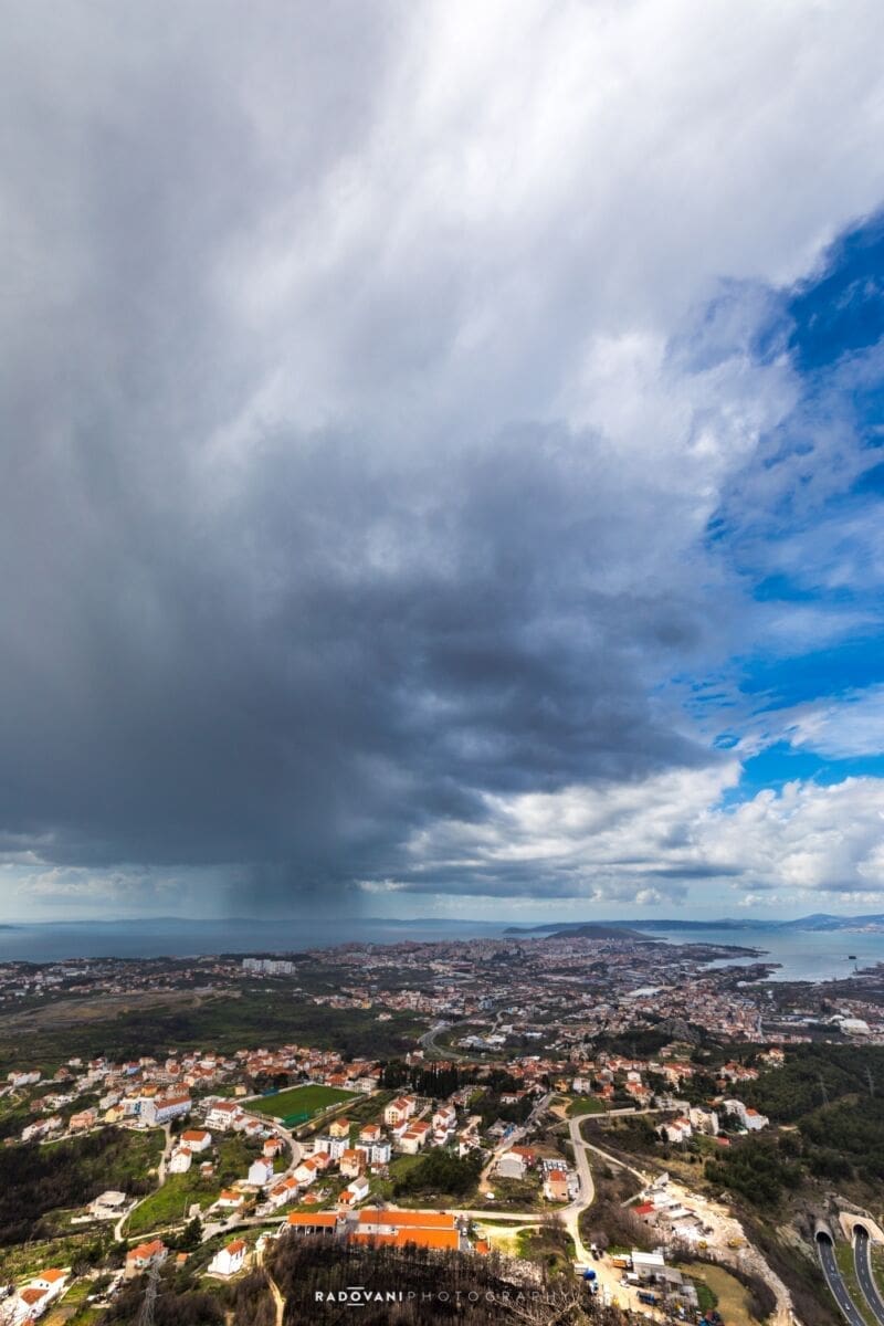 Točno u to vrijeme iznad Splita i okolice premještali su se tmurni oblaci, pružajući prema tlu oborinske "zavjese".