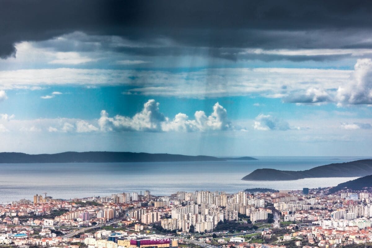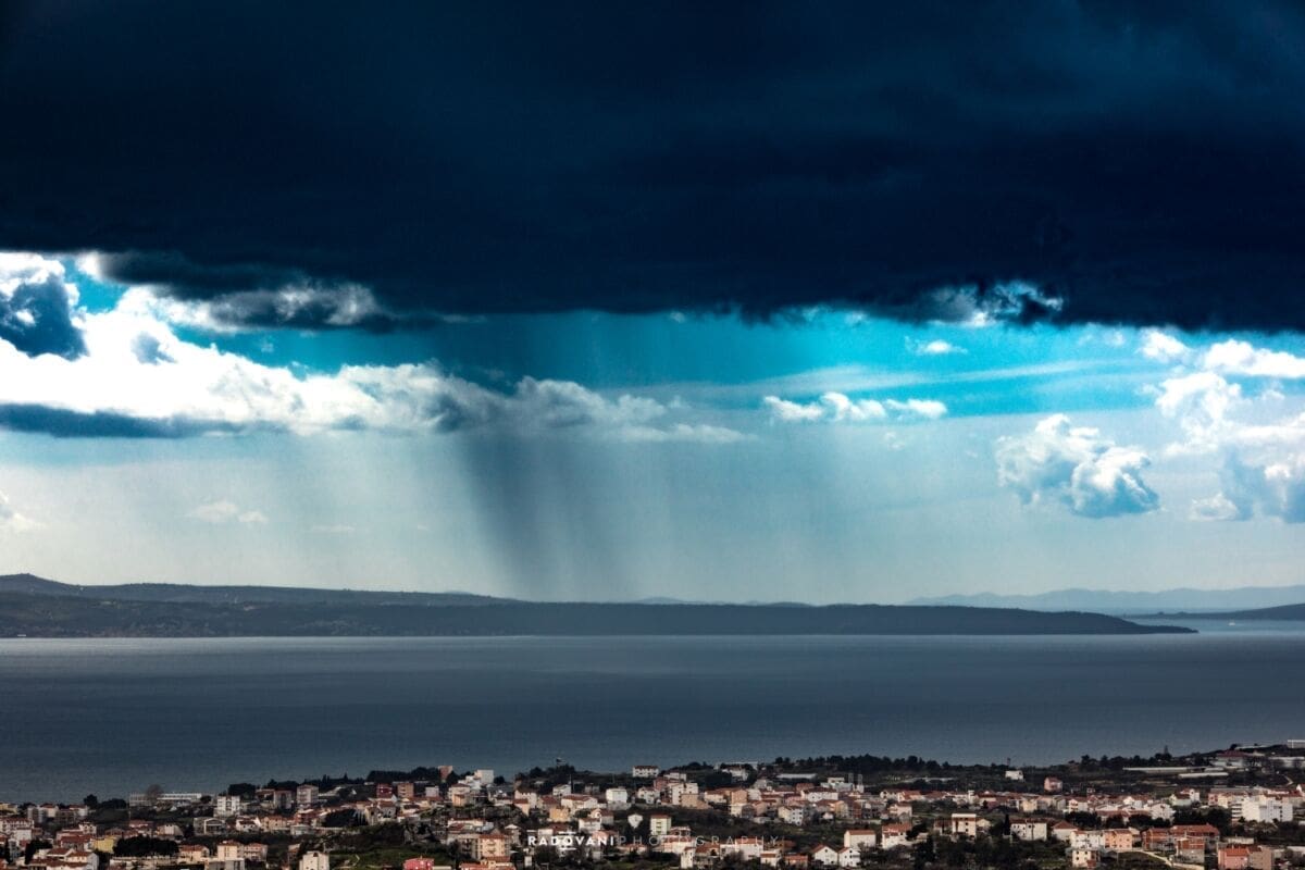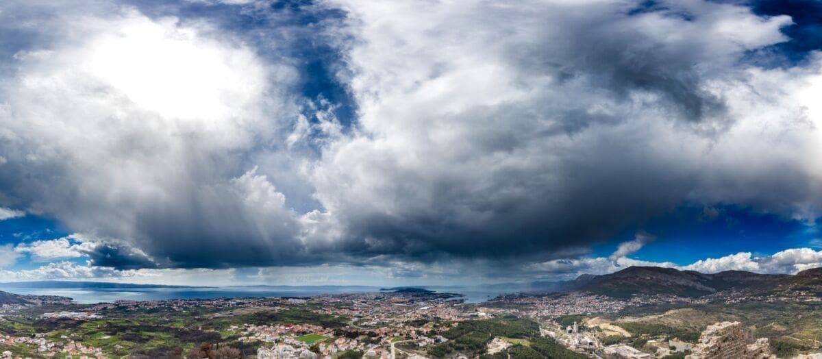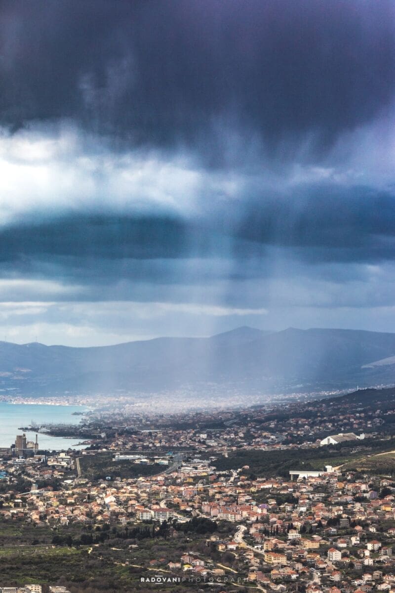 Točno u to vrijeme iznad Splita i okolice premještali su se tmurni oblaci, pružajući prema tlu oborinske "zavjese".