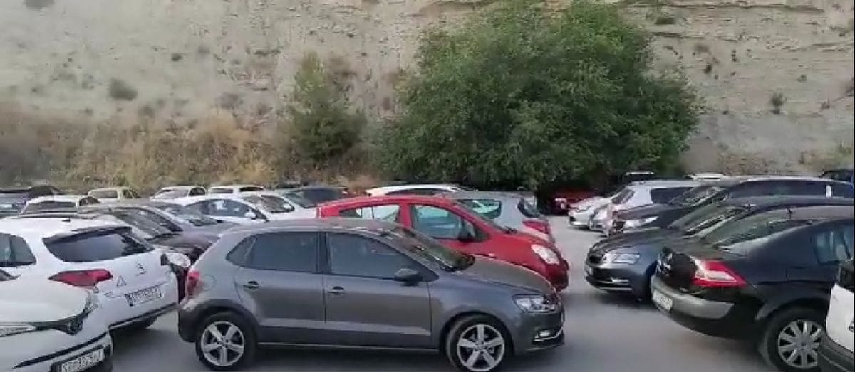Prometni apsurd, u kojem su se 'naslagala' tri reda parkirana automobila snimili smo danas na splitskoj plaži Obojena.