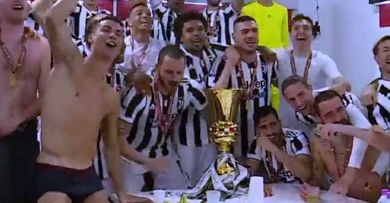 Zatim je kapetan Leonardo Bonucci donio pehar u svlačionicu. Igrači su se skupili oko trofeja i pjevali. Većina ih je bila u dresovima, a samo dvojica su bila gola do pasa. Međutim, Ronaldo je bio jedini koji je oko pehara skakao i skandirao tek u gaćicama, piše Index.
