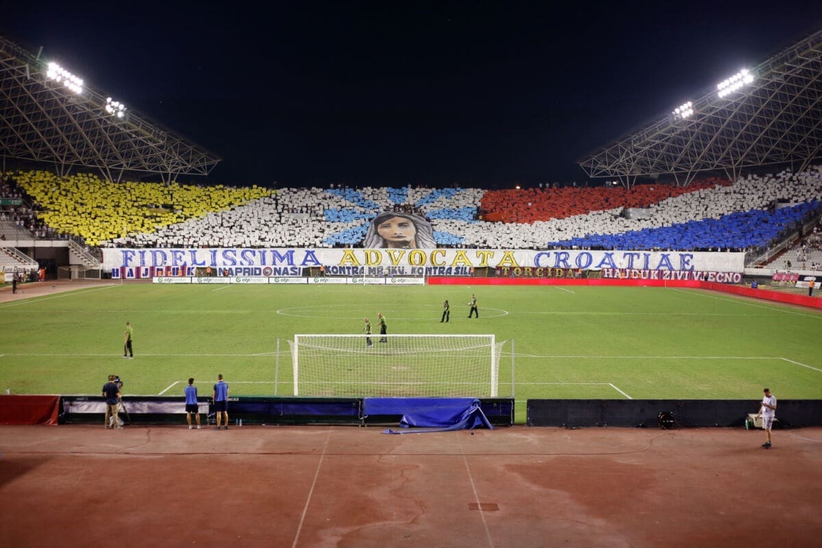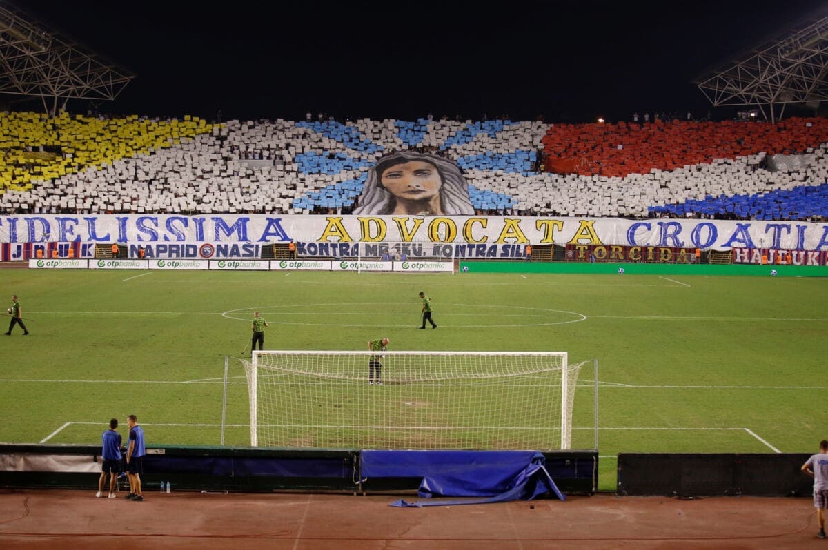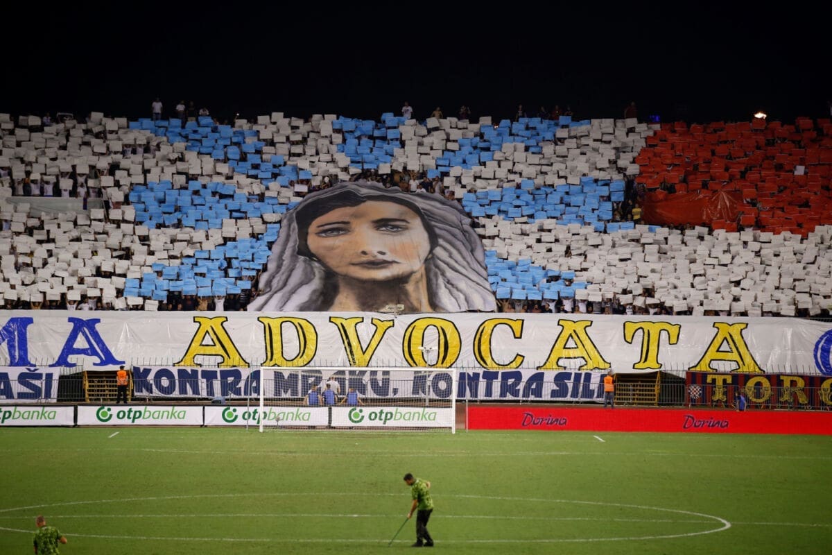 Središnji motiv bila je Gospa, a upravo se za nekoliko dana slavi blagdan Velike Gospe. Uz Gospin lik, koreografijom su dominirale boje vatikanske i hrvatske zastave. Ispod je pisalo: Fidelissima advocata Croatiae (Najvjernija zagovornice Hrvatske). Torcida je tako poslala poruku kojom očito, uz pomoć odozgora, računa na prolaz.
