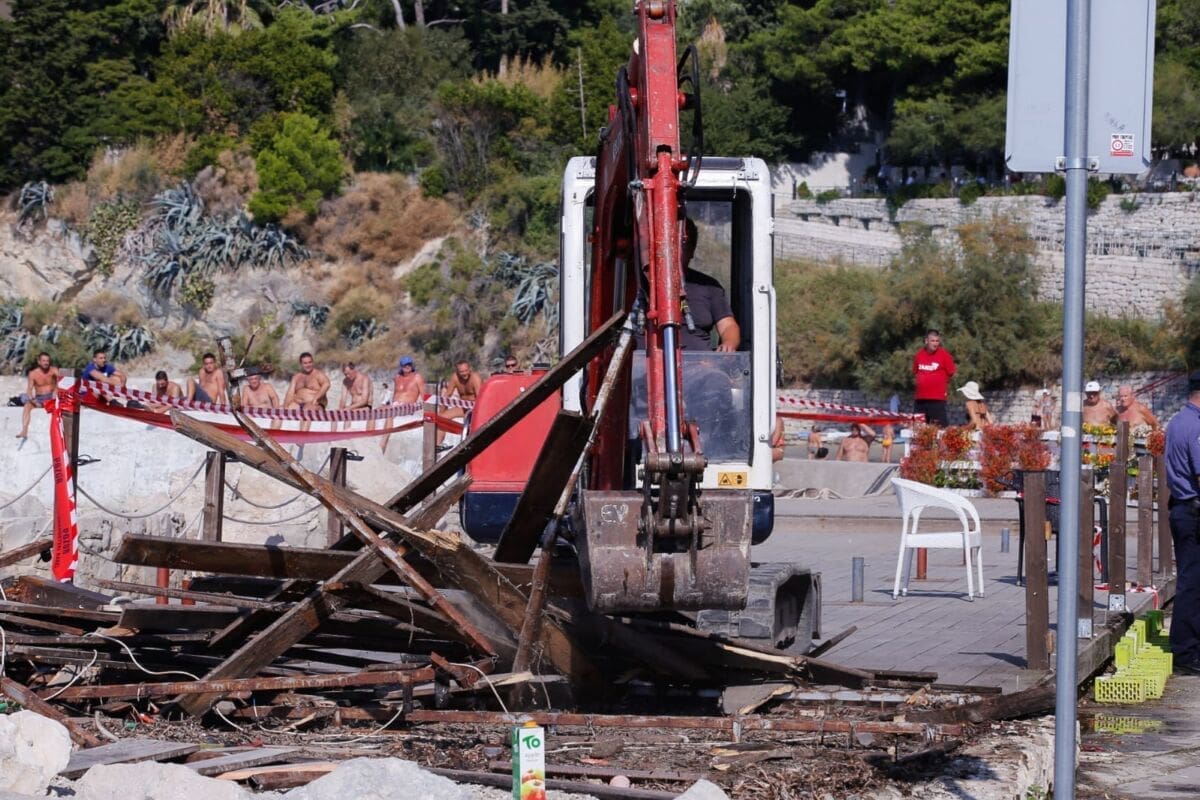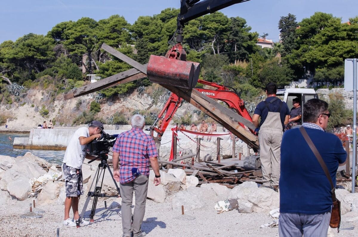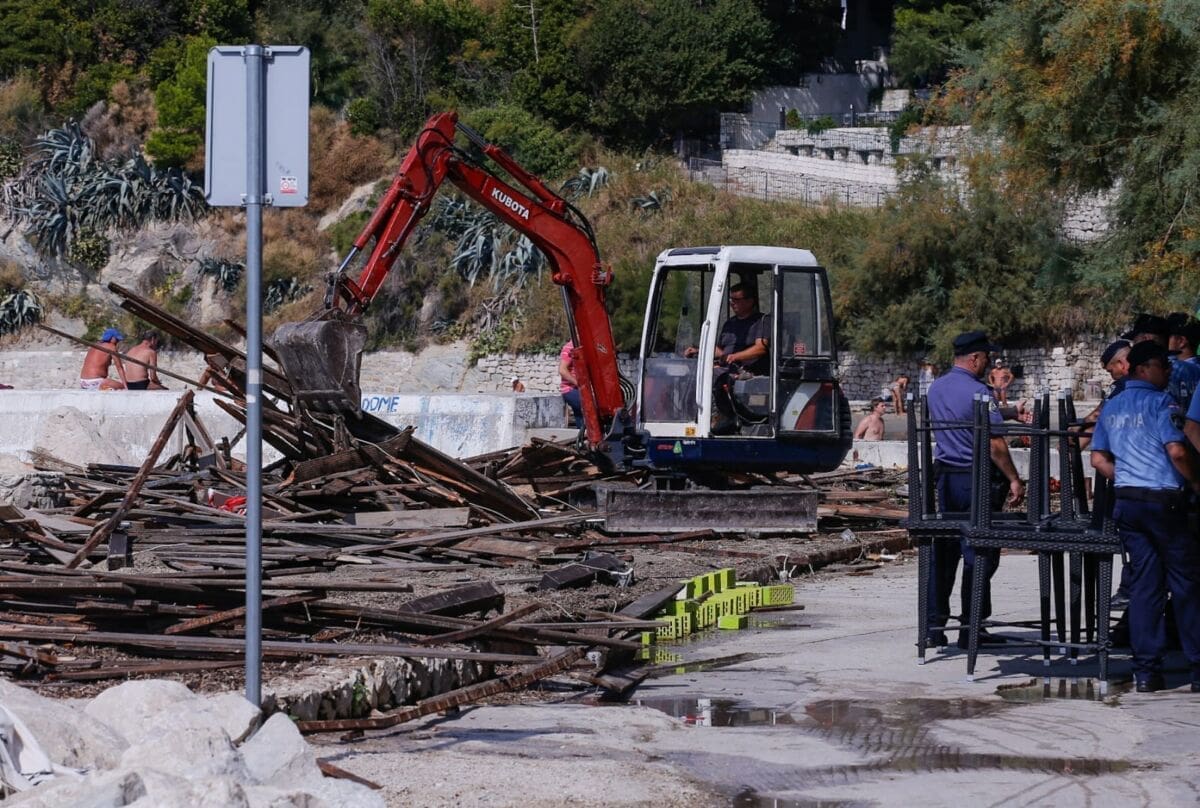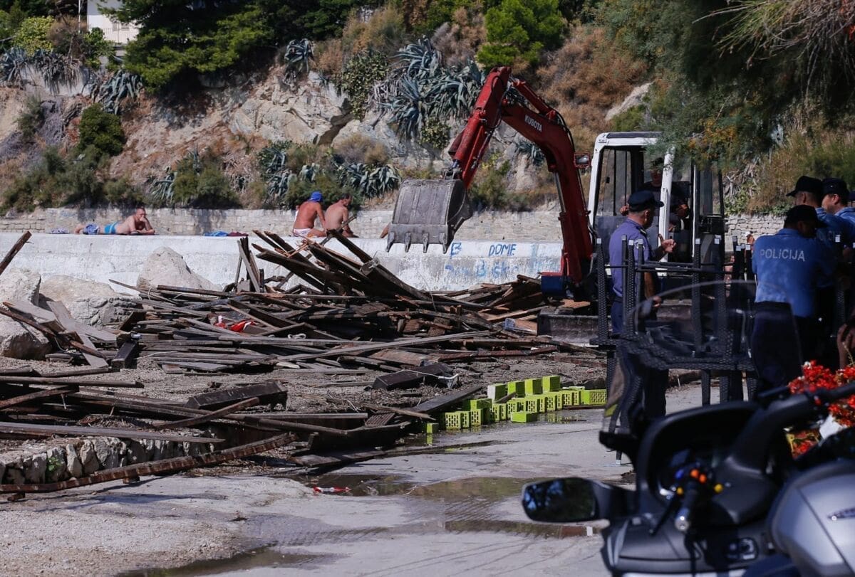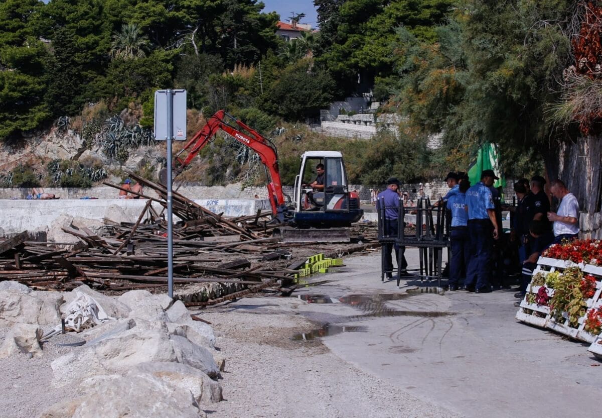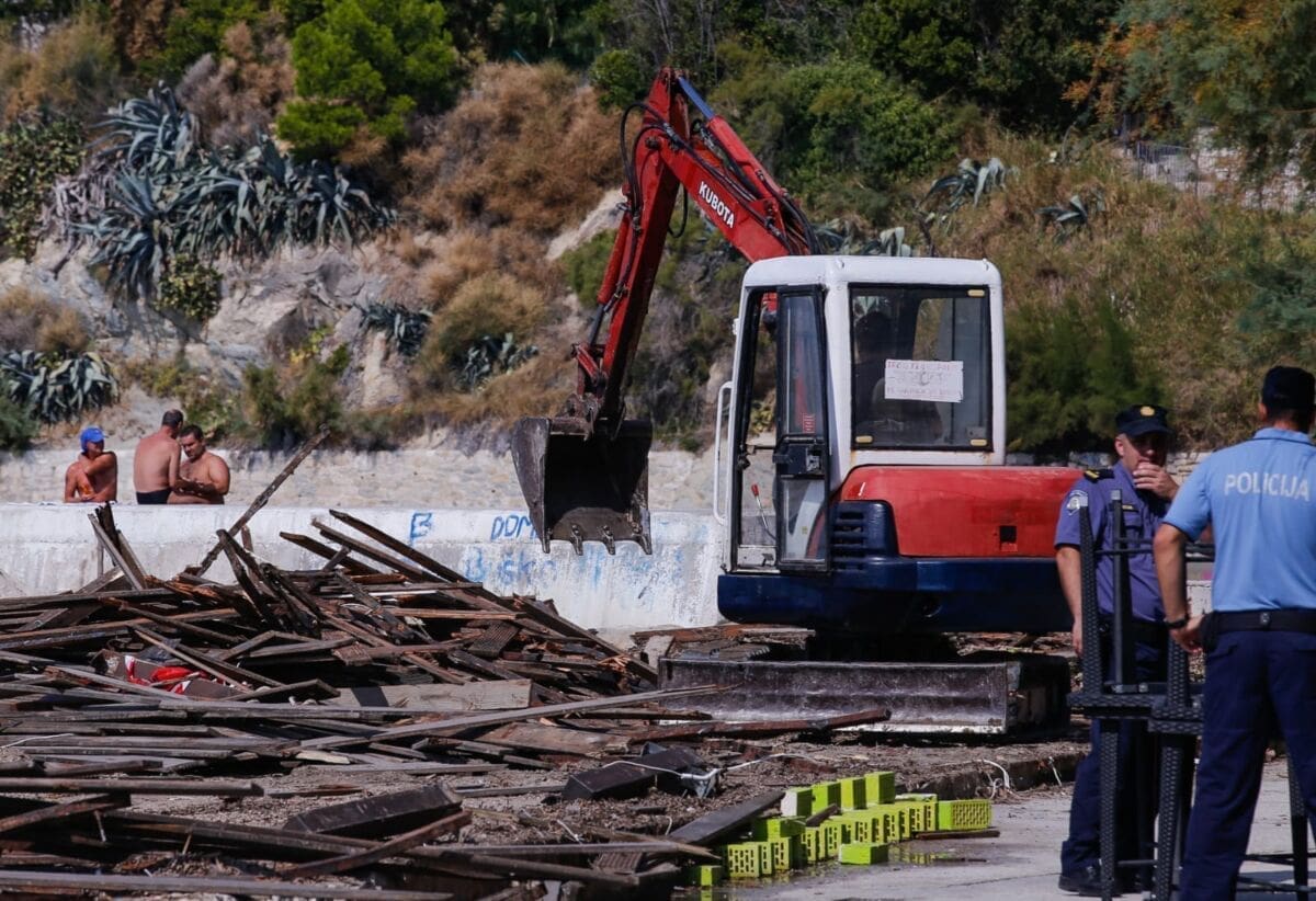 Kako je i bilo najavljeno, tijekom ponedjeljka uklonjen je štekat kafića Firule. Uklonili su bageri Ministarstva graditeljstva, a cijelu je akciju rušenja osiguravala policija.