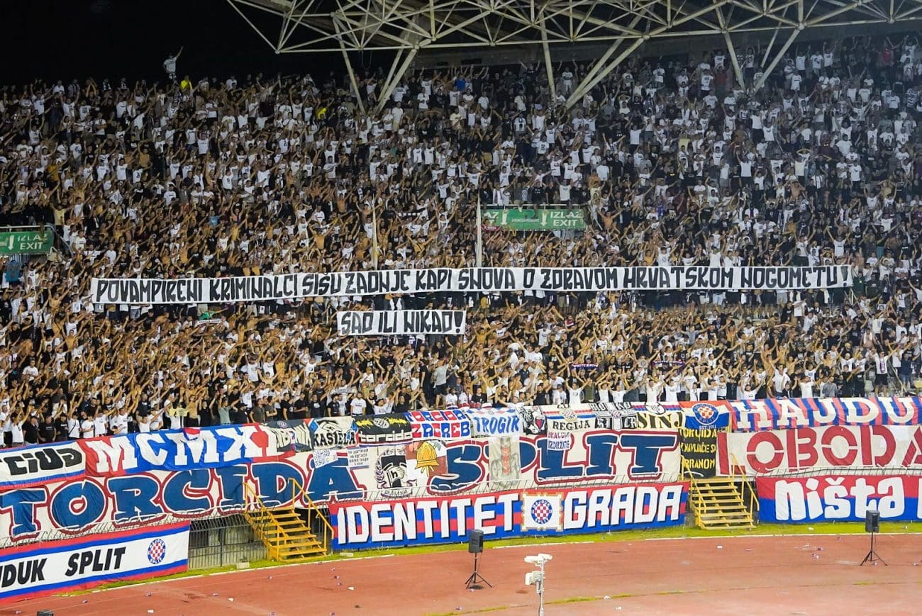 Derbi između Hajduka i Rijeke na Poljudu obilježio je ne samo nogomet na travnjaku, nego i snažna poruka s tribina. U 52. minuti utakmice Torcida je razvila transparent na kojem je pisalo:
