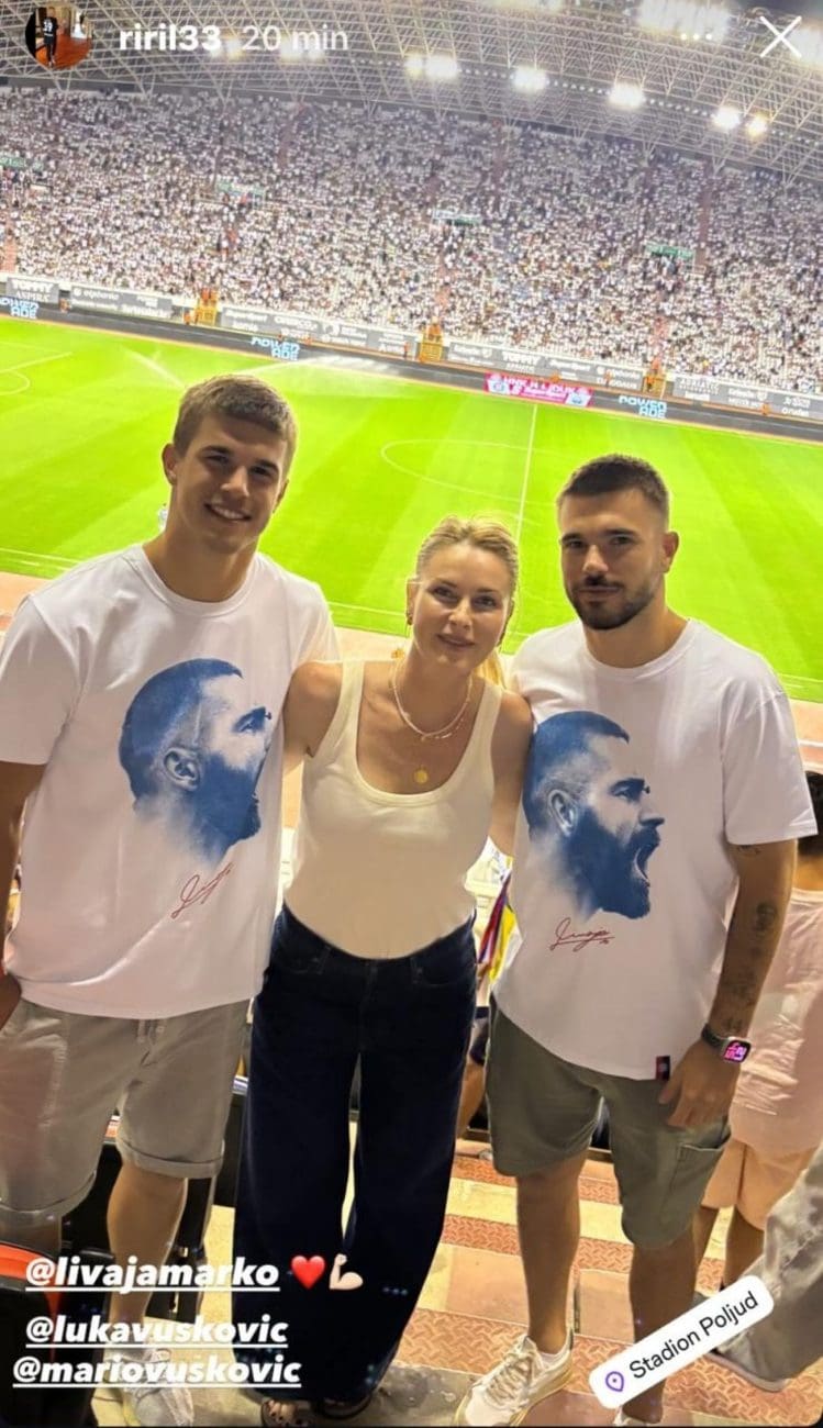 Smjestili su se u ložu stadiona, a pažnju su privukli majicama na kojima je bio lik Marka Livaje, čime su jasno pokazali podršku kapetanu Hajduka.