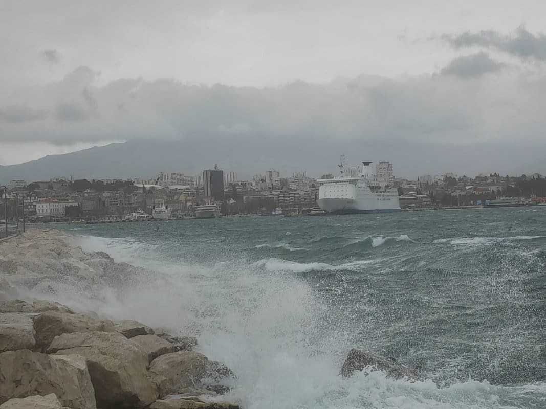 Iako nije očekivana marčana bura, danas u Splitu olujno jugo stvara mnoge probleme u pomorskom prometu.