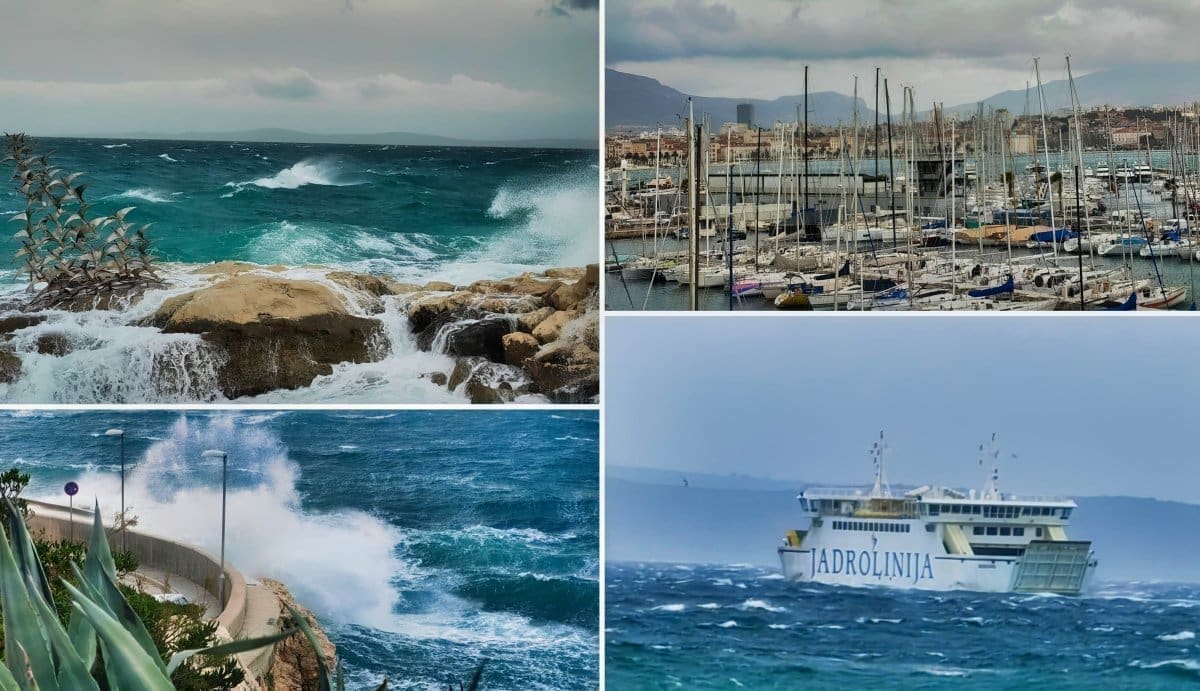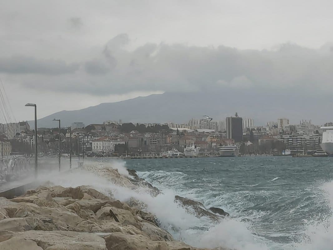 U Splitu je do 11 sati i 40 minuta najjači udar juga iznosio 104 km/h, a jugo je poremetilo i linije u Jadrolinijinom pomorskom prometu radi čega su otkazane brojne trajektne i katamaranske linije.