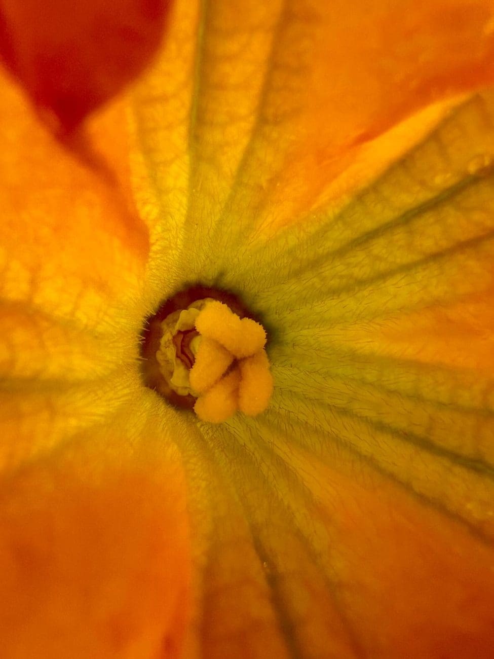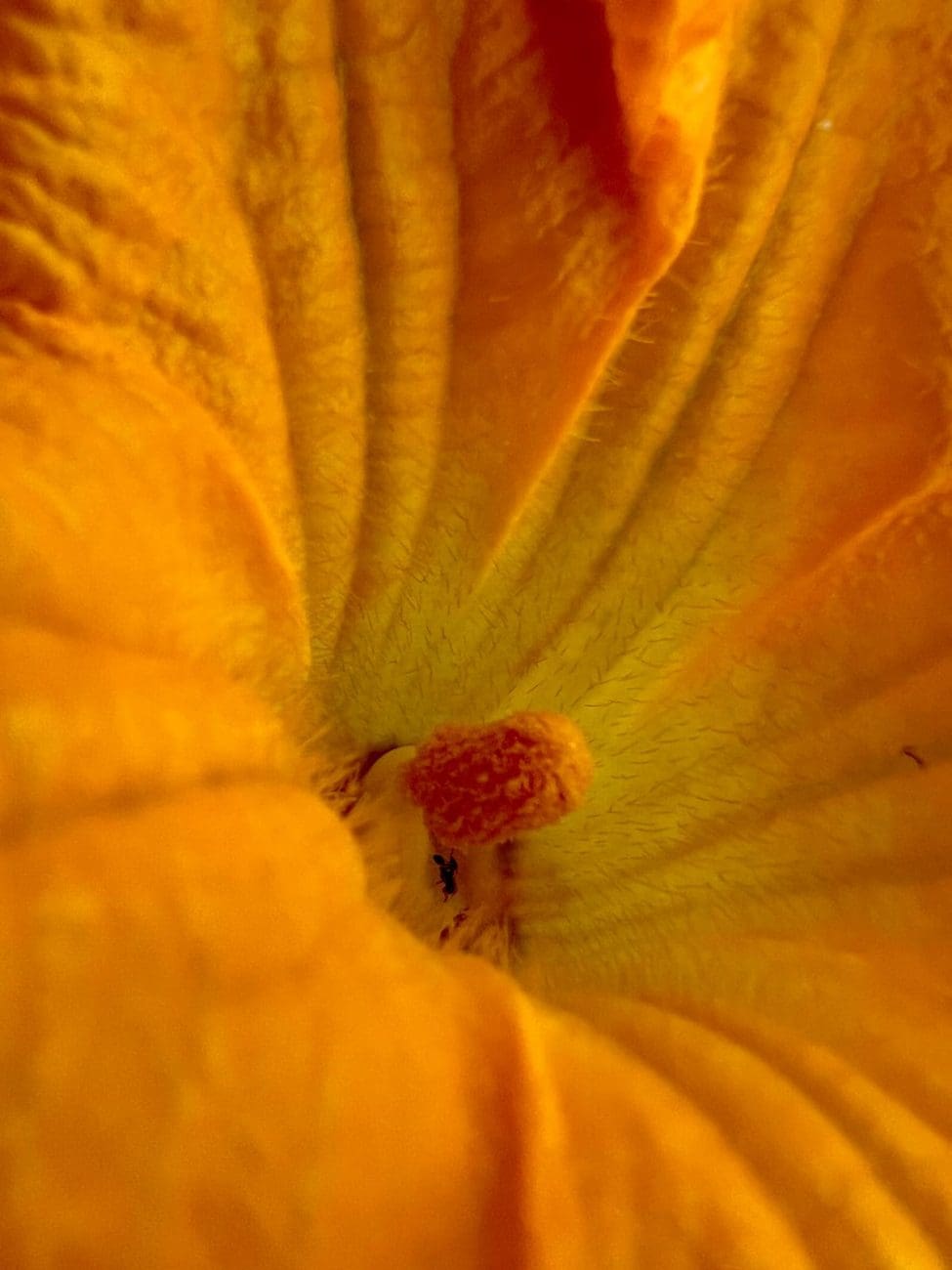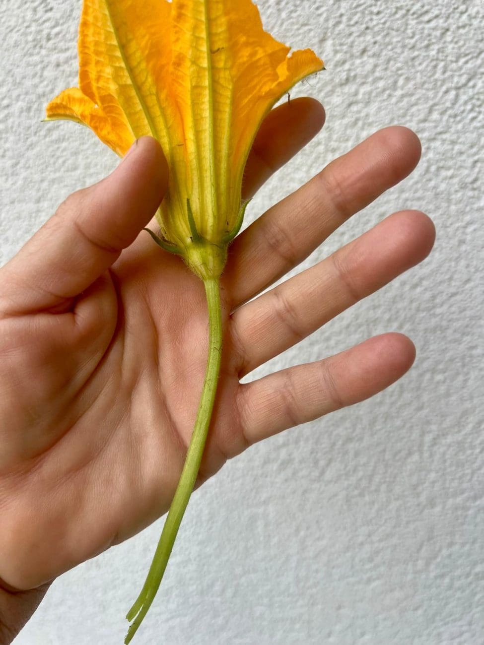Da bi se ta mala tikvica ispod cvijeta razvila (i u raskošne polpete, rižot i još puno toga pretvorila), pelud iz muškog cvijeta mora dospjeti na tučak ženskog cvijeta, a za to su zadužene pčele i ponešto bumbari. Ako zakažu zbog bilo kojeg razloga, tu nastupa čovjek. I potpomognuta oplodnja. Kistom ili štapićem za uši prenesemo pelud s muškog cvijeta u središte ženskog. Jednostavno je. Kako znam? Znam jer to često radim, da budem sigurna u oplodnju: moj je vrt malen – samo dvije tikvice – pa ne riskiram. A i otužno mi je gledati neoplođenu tikvicu kako se polako smanjuje i vene.