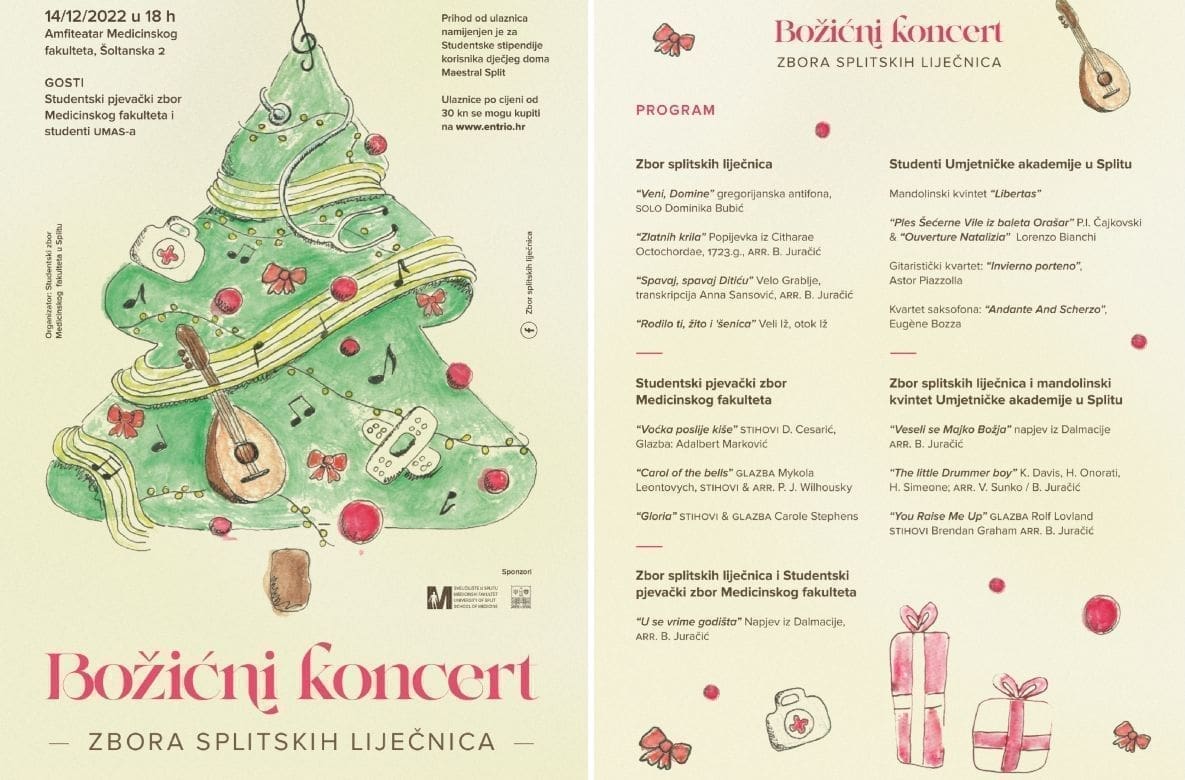 U Amfiteataru Medicinskog fakulteta u Splitu na adresi Šoltanska 2, u srijedu 14. prosinca 2022. godine sa početkom u 18 sati, održat će se "Božićni koncert Zbora splitskih liječnica".