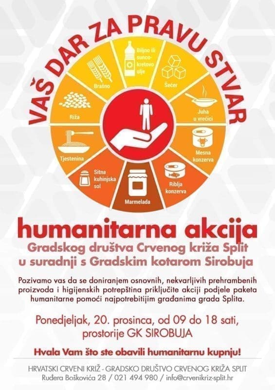Humana i hvalevrijedna akcija organizira se na istoku Splita. Iz Gradskog kotara Sirobuja pozivaju građane da pridruže humanitarnoj akciji Crvenog križa i GK Sirobuja.