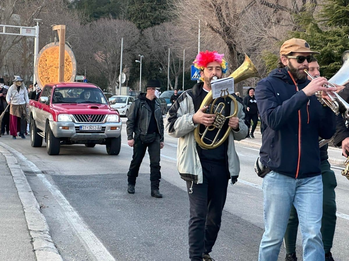 Tradicionalno, gradovi i sela imaju svoga 'krnju' kojeg na kraju povorke spale, a ovogodišnji omiški krnjo bila je kovanica eura.