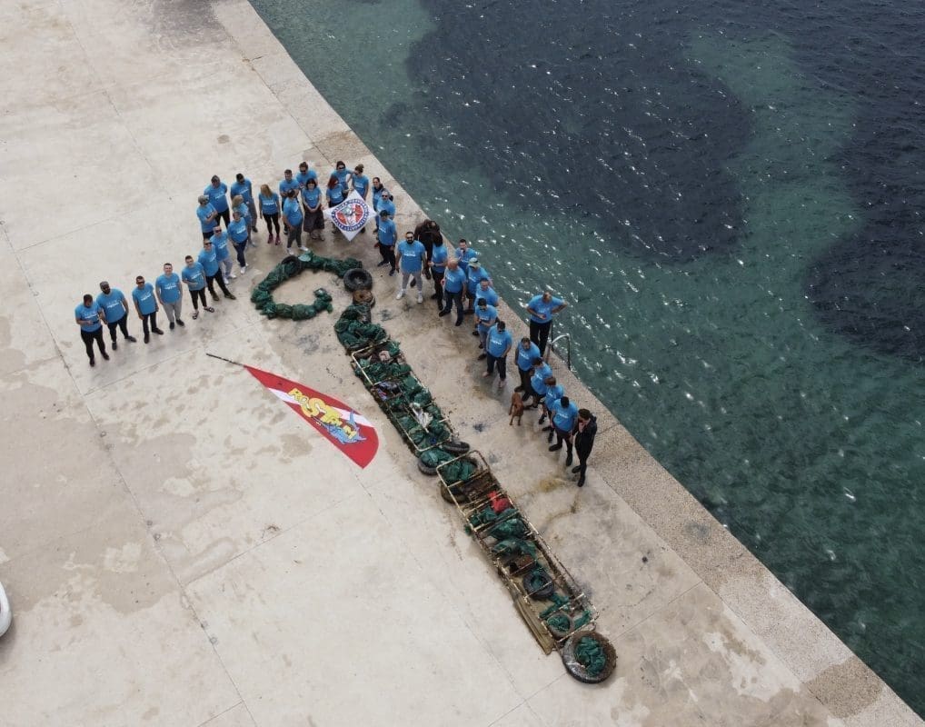 Prikupljeni otpad na kopnu je simbolično oblikovan u pastirski štap sv. Dujma u čast zaštitniku grada Splita. Pokrovitelji današnje akcije, trgovački lanac „Tommy“ i komunalno društvo „Čistoća“, dugogodišnji su partneri UPA „Rostrum“ na ekološkim akcijama.