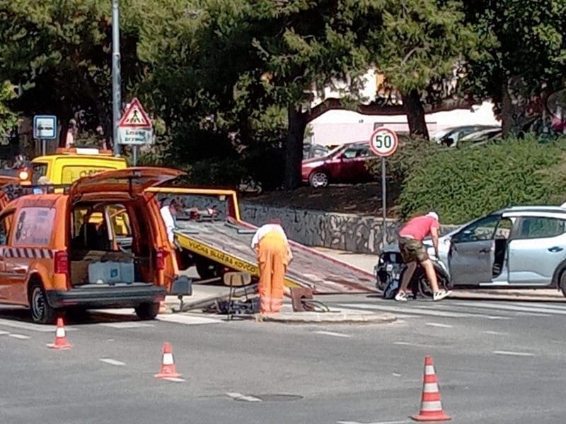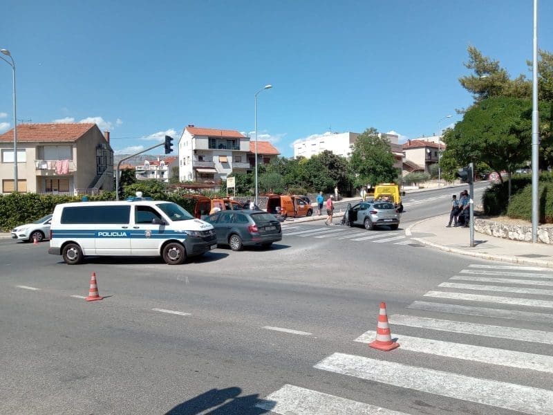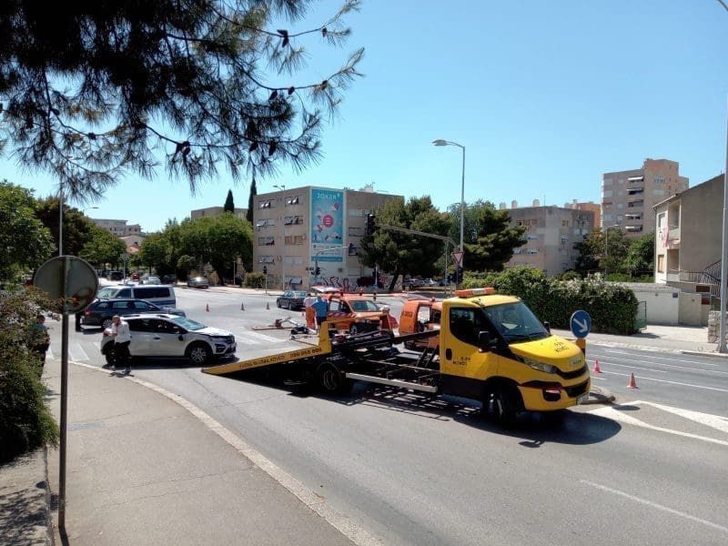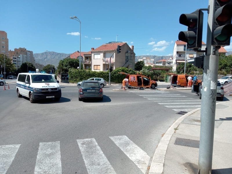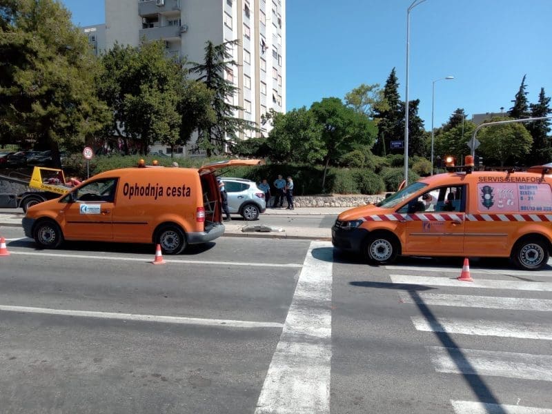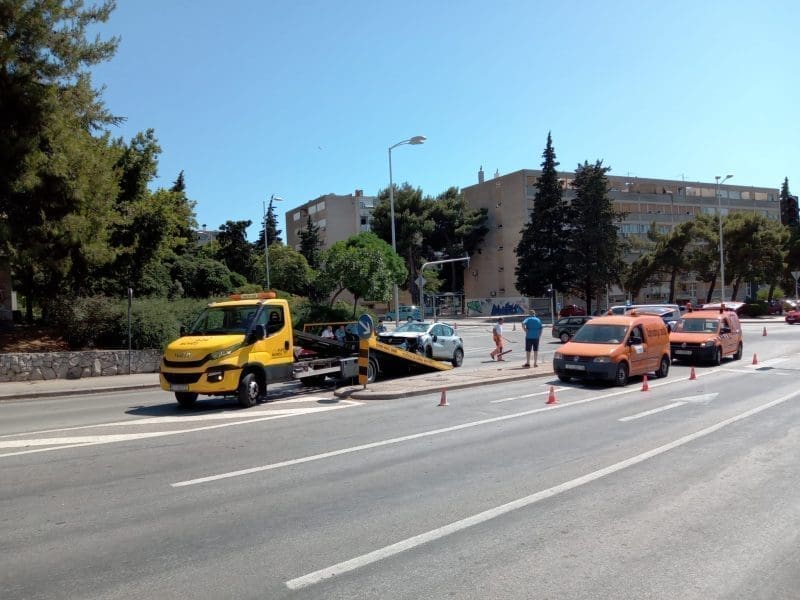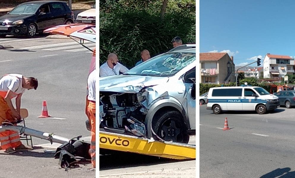 U nedjelju poslijepodne na križanju Dubrovačke i Velebitske ulice u Splitu dogodila se prometna nesreća. Automobil je udario u semafor za pješake i srušio ga, a potom se i prevrnuo.