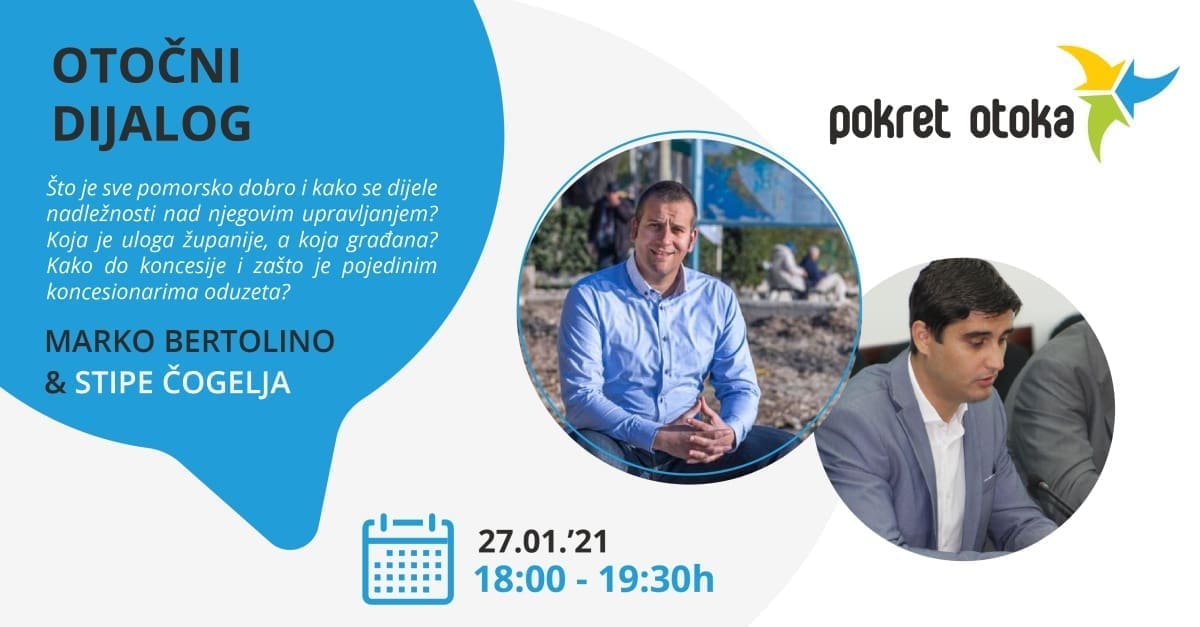 Ako želite bolje upoznati pojam pomorskog dobra i nadležnosti nad njegovim upravljanjem; koja je uloga jedinice lokalne samouprave, a koja građana; što se sve promijenilo u procesu u posljednjih nekoliko godina te kako do koncesije i zašto je nekim koncesionarima oduzeta - bukirajte kalendar i pogledajte prvi otočni podcast u organizaciji Pokreta otoka koji će se održati 27. siječnja od 18 do 19.30 sati putem FB Live kanala.