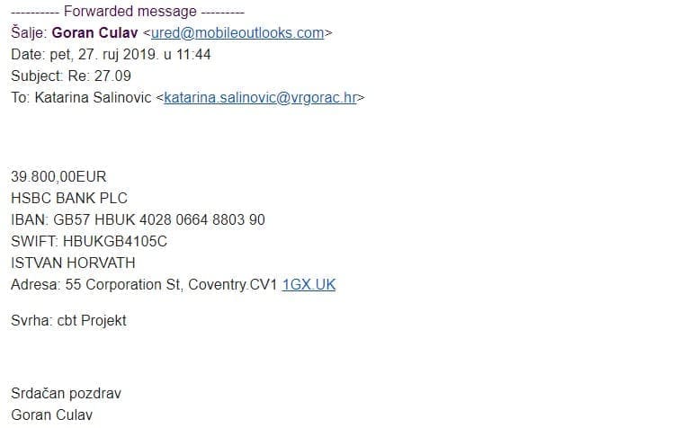 Poučeni dosadašnjim iskustvom sa ovakvom vrstom internet prevara koje nikad nisu izolirani slučajevi, već se u jednom valu kontaktira više pravnih osoba, gradova, općina, institucija… želimo informirati javnost o navedenom pokušaju i da sami prepoznaju prijevaru i prikupe što više informacija koje su potrebne da se dođe do počinitelja.