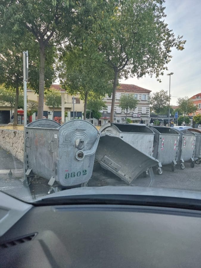 Na jednom od parkinga u blizini Sukoišanske ulice, kod kućica gdje se prodaju autobusne karte Prometa Split, oštećen je jedan kontejner.