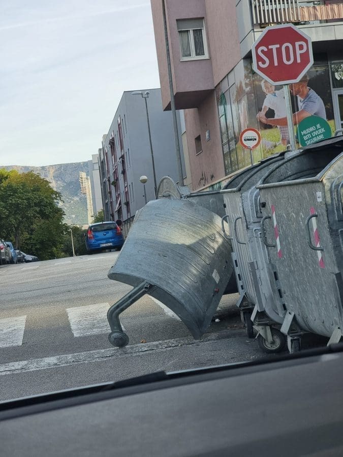 Kontejner, naime, donekle može dovesti u opasnost vozače jer je 'zagradio' gotovo jednu cijelu prometnu traku. U svakom slučaju, u nadi da će se ovo što prije riješiti, donosimo vam fotografije i molimo vas za oprez, ako se krećete ovim dijelom Splita.