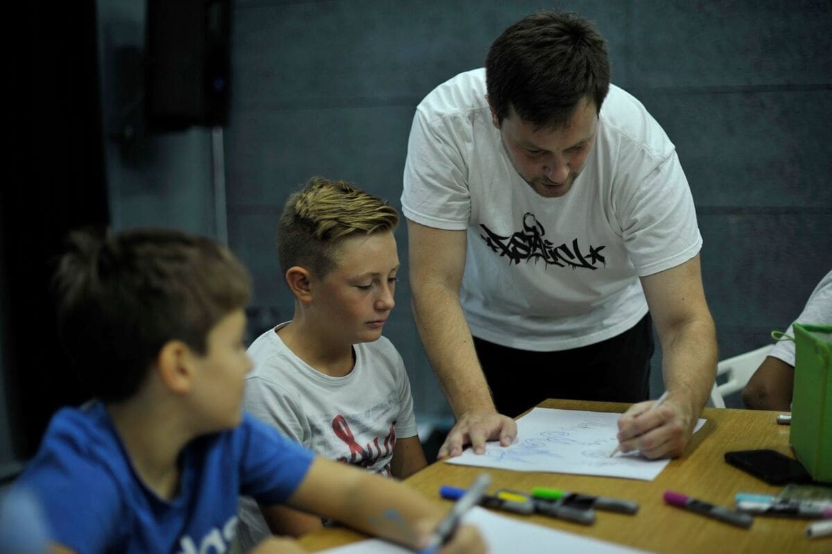 U okviru šestodnevne škole u Beton kinu uz teoretski dio na kojem su učili o povijesti graffita i splitske graffiti scene, razlikovanju nelegalnog crtanja-šaranja i graffita, upoznali se s alatima graffitera , u praktičnom dijelu su svladavali tehnike upotrebe markera i spreja.