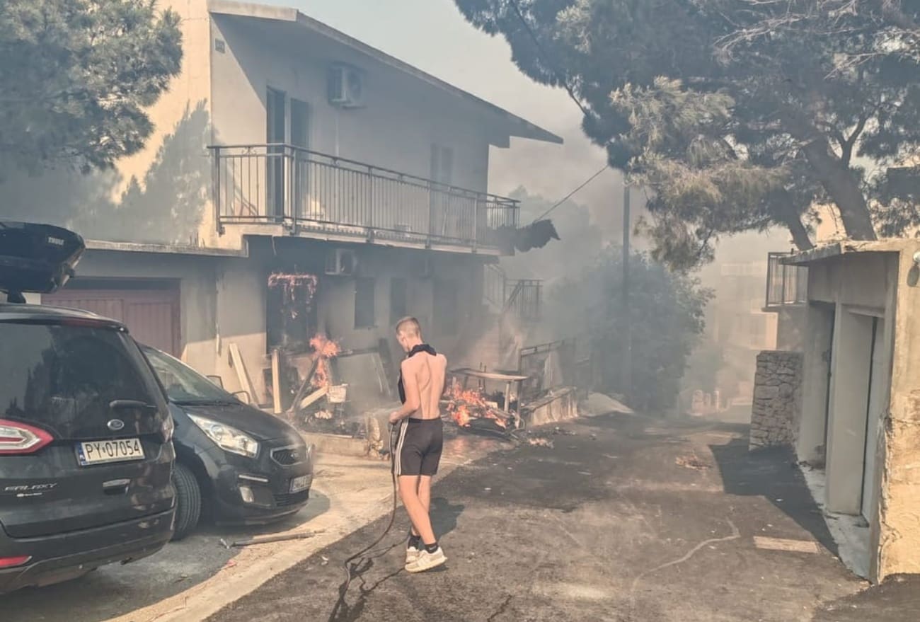 Na terenu je 250 vatrogasaca, a nagorjele su kuće i potpuno izgorjeli automobili. Morski.hr objavio je potresnu fotografiju s požarišta na kojoj se vidi kuća u plamenu.