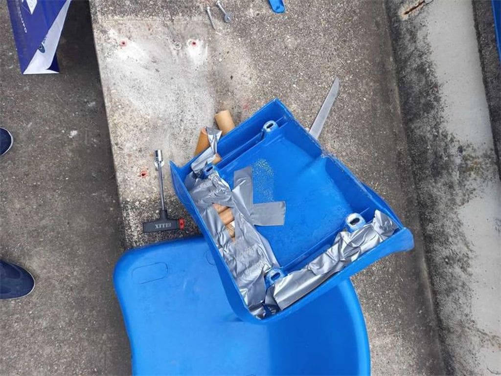 Tijekom obavljanja sigurnosnog pregleda stadiona, prije početka utakmice, pronađen je 31 komad pirotehničkih sredstava („bengalke“) na tribinama“, poručili su iz policije i objavili fotografiju na kojoj se može vidjeti kako su nepoznate osobe pokušale sakriti bengalke.