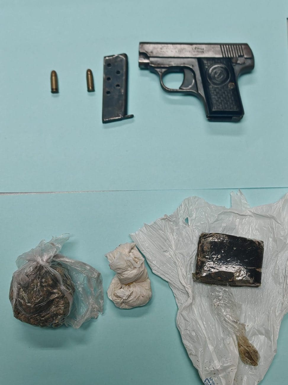 Tijekom pretrage pronađeni su i oduzeti pištolj s pripadajućim streljivom, kao i više vrsta droge, i to hašiš, amfetamin i marihuana.