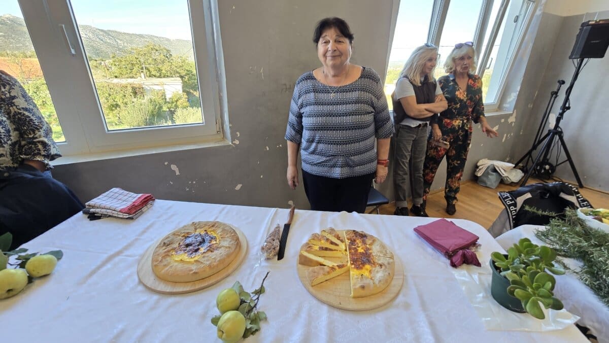 Darija Bujas iz Žrnovnice je prezentirala žrnovački plisnac čija je podloga soparnik, ali u koji ide dva kilograma mladog sira i 12 jaja. Na lijepo ukrašenom stolu donijela je i četiri sve popularnije sorte - žrnovačke jabuke. Ksenija Čirjak iz Pristega kraj Benkovca prezentirala je benkovački prisnac, odnosno pastirski kolač i to u dvije varijante - slatkoj i slanoj. Marija Prelas za ovu prigodu ispekla je tituš, a ambasadorica Poljica, kako joj mnogi tepaju, razgalila je srca kada je zaojkala pjesmu koju je njena baka naučila prije više od 70 godina “Slavuj piva”.