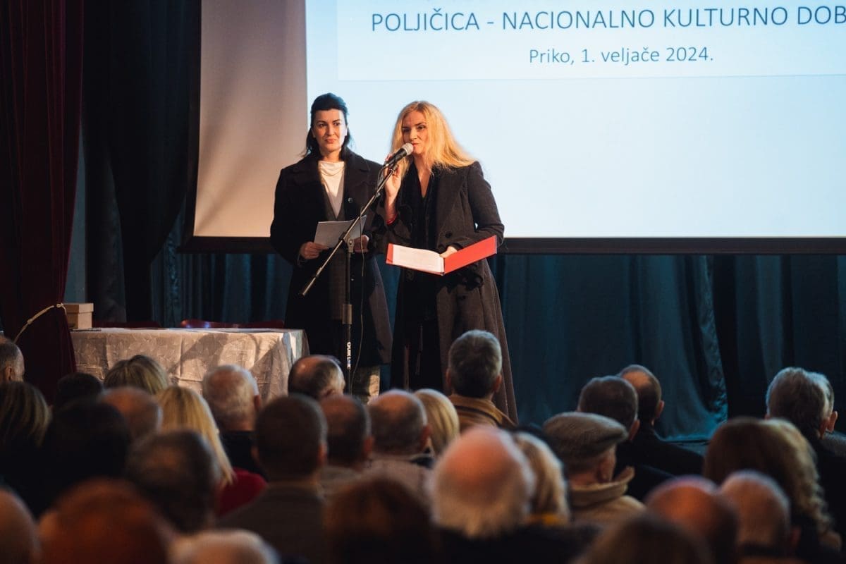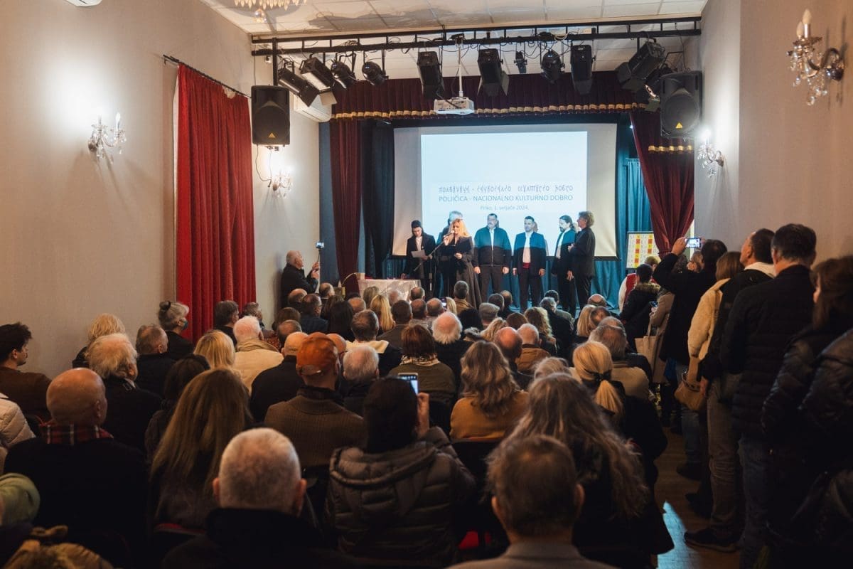 Poljički hram kulture, Ilirsko sjemeništa na Priku, sinoć je bilo pretijesno za sve one koji su došli slaviti proglašenje poljičice nacionalnim kulturnim dobrom. Voditeljice večeri su bile Jelena Novaković i Vesna Bulić Baketić.