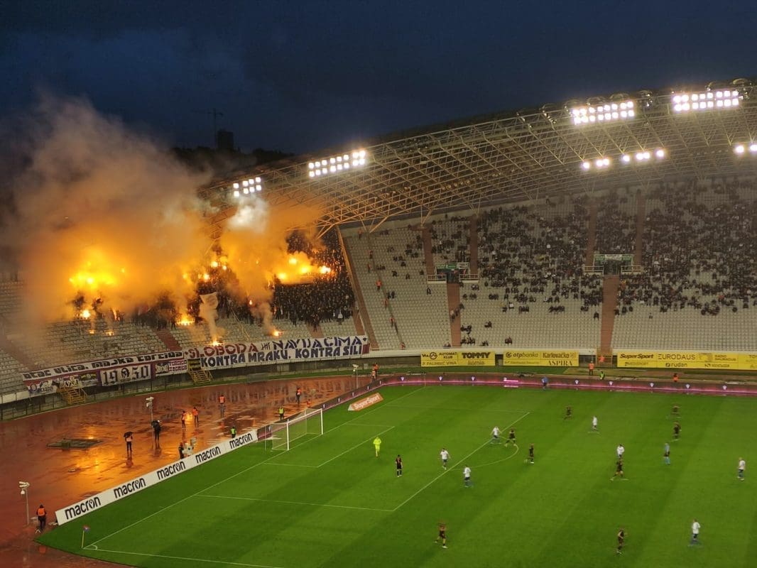 Tijekom prvog poluvremena Torcida je na Sjeveru priredila pravu bakljadu. U jednom trenutku cijeli je stadion bio obavijen dimom.