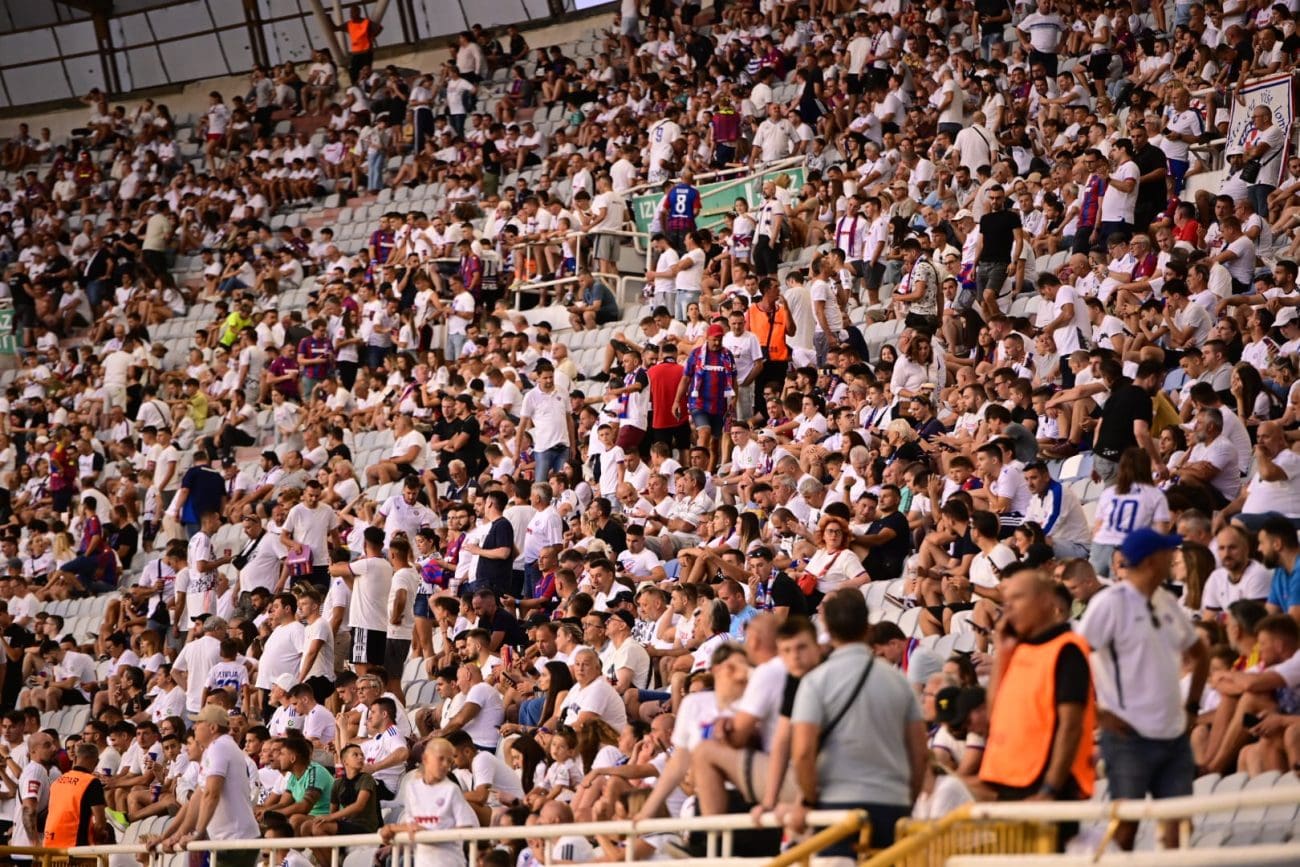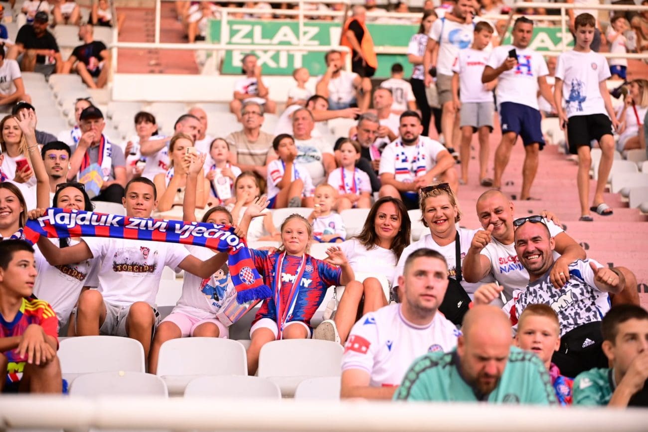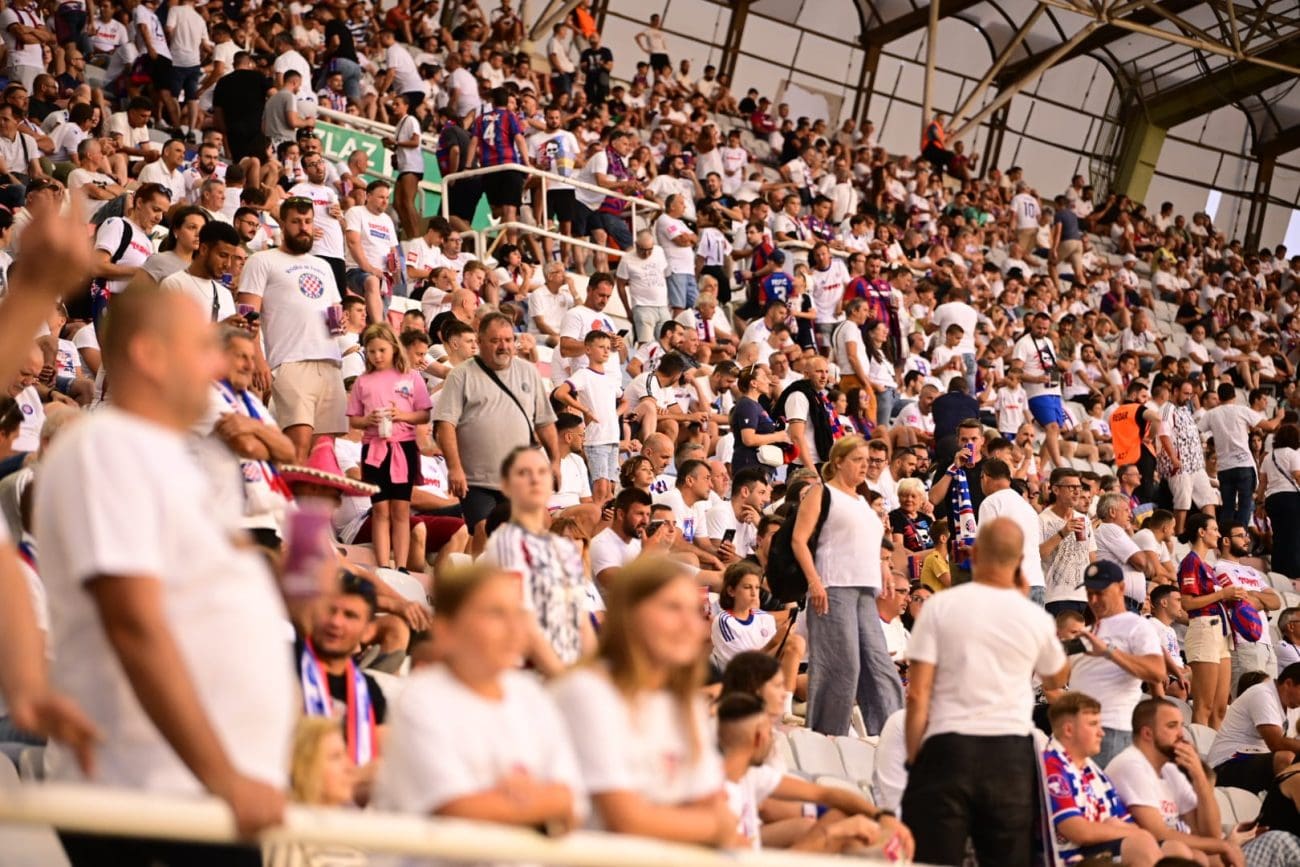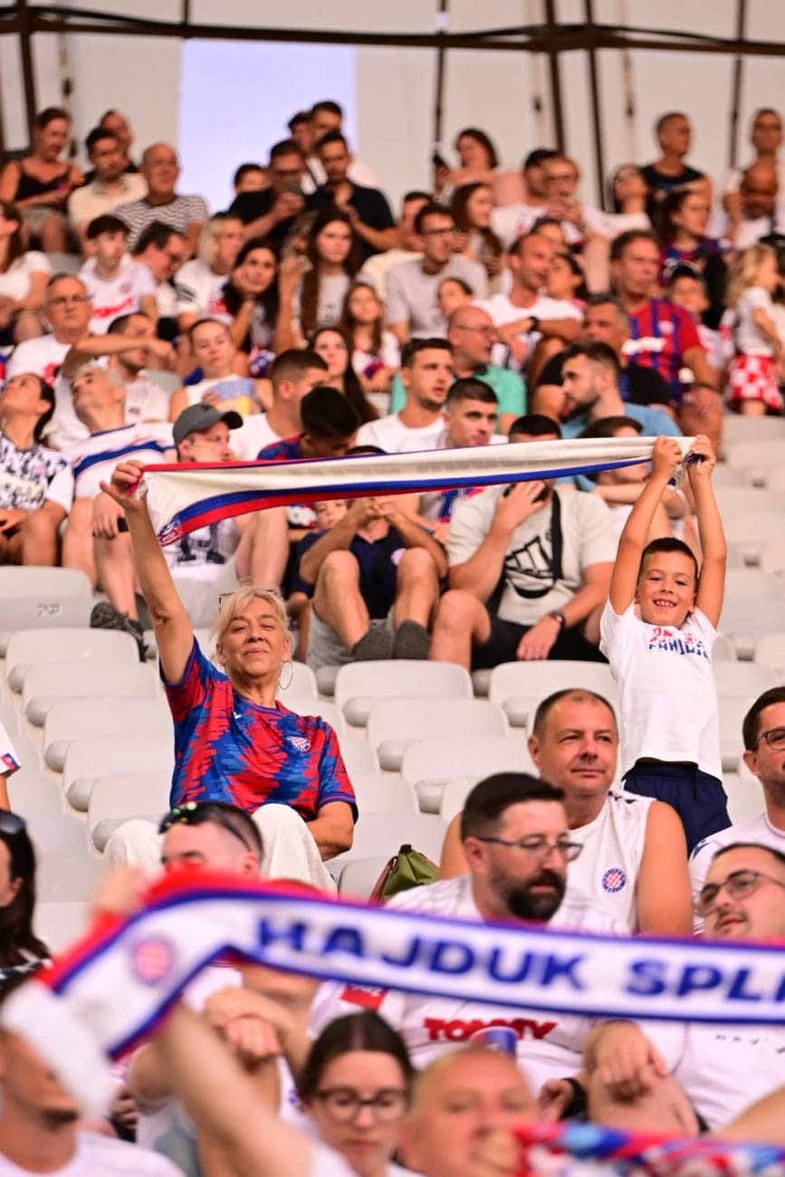 Poljud je večeras krcat uoči uzvratne utakmice drugog pretkola Konferencijske lige između Hajduka i azerbejdžanske Zire. Još satima prije početka susreta bilo je jasno da će Split ponovno stati iza svojih Bijelih. Tribine su se brzo popunile, a atmosfera je iz minute u minutu sve užarenija.