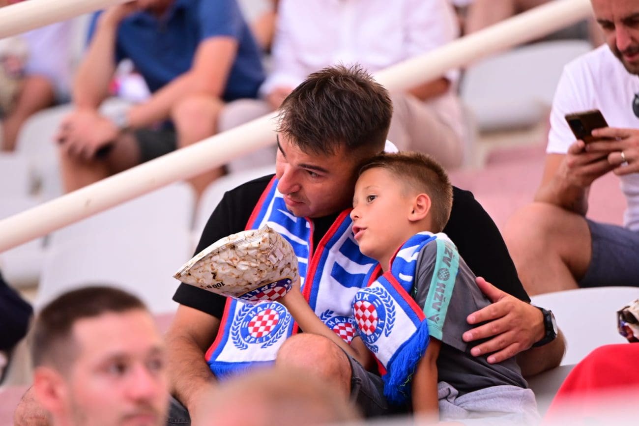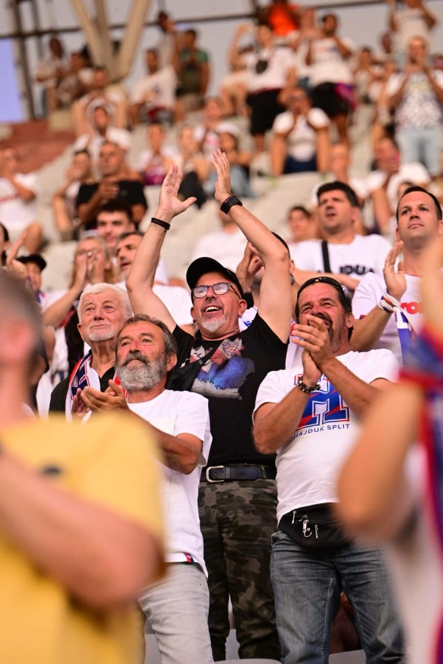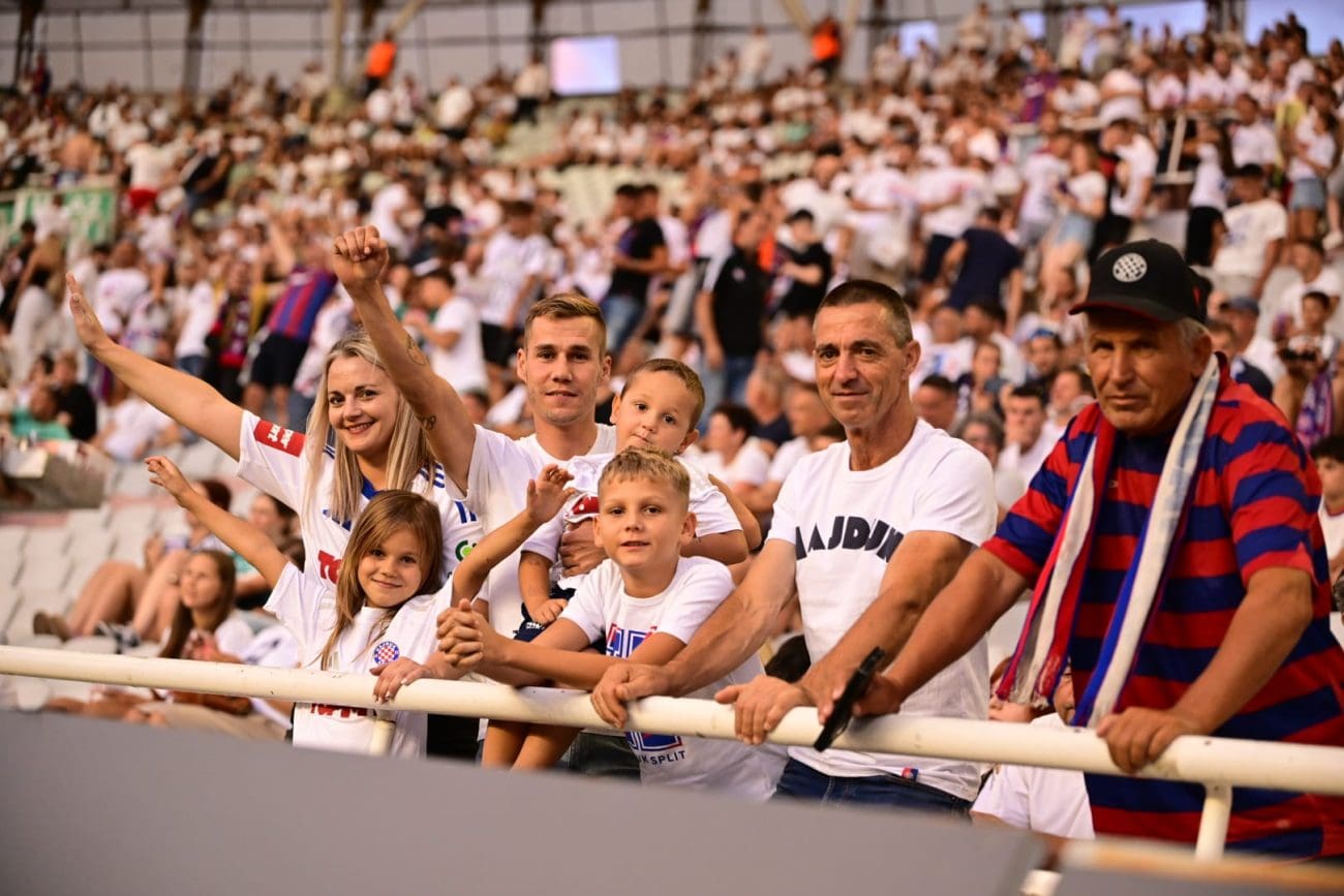 Uoči odlučujućeg dvoboja vlada istinski sportski zanos. Na stadion su pristizale cijele obitelji, navijači svih generacija, od najmlađih u dresovima do onih koji se sjećaju najvećih dana splitskog kluba.