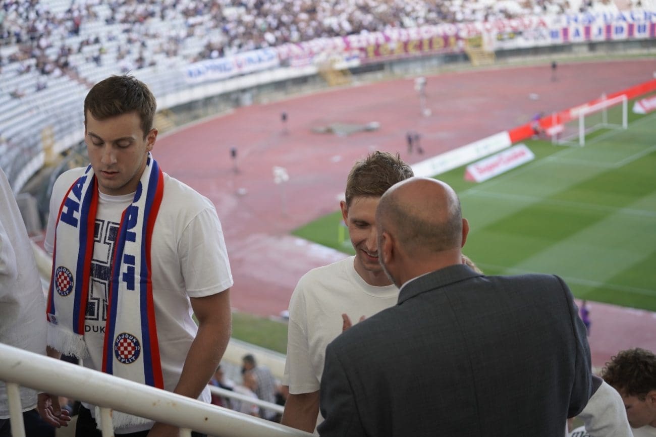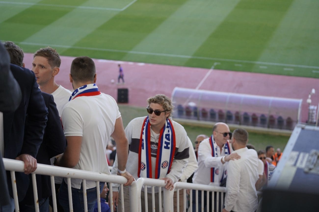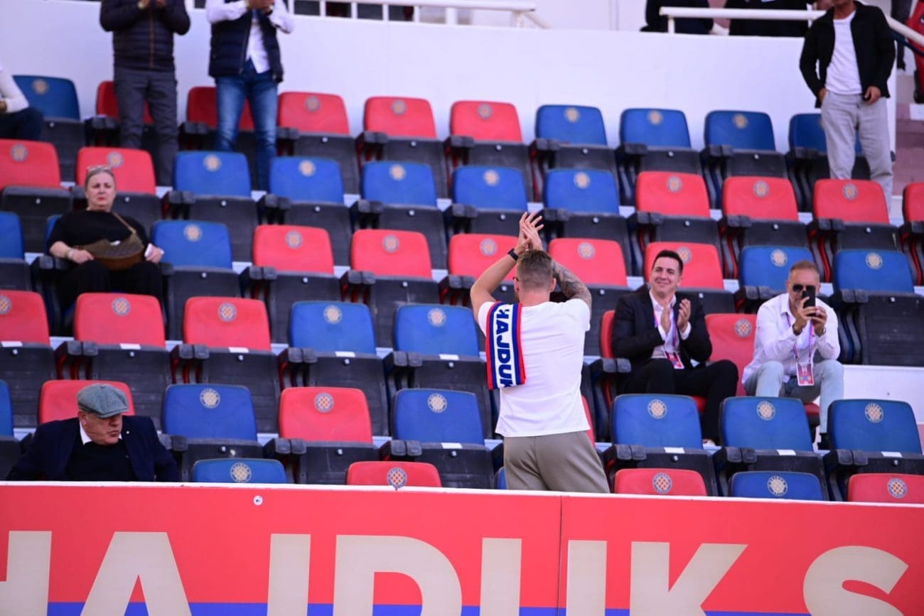 Prije samog početka susreta, Hajduk je dočekao nove-stare prvake hrvatskog vaterpola. Susjedi s poljudskih bazena, Jadranaši, pozdravljeni su pljeskom Poljuda predvođeni kapetanom i vatrenim navijačem Hajduka Jerkom Marinićem Kragićem uz pjesmu "Nek zazvone svetog Duje zvona".