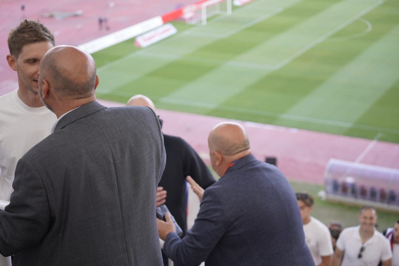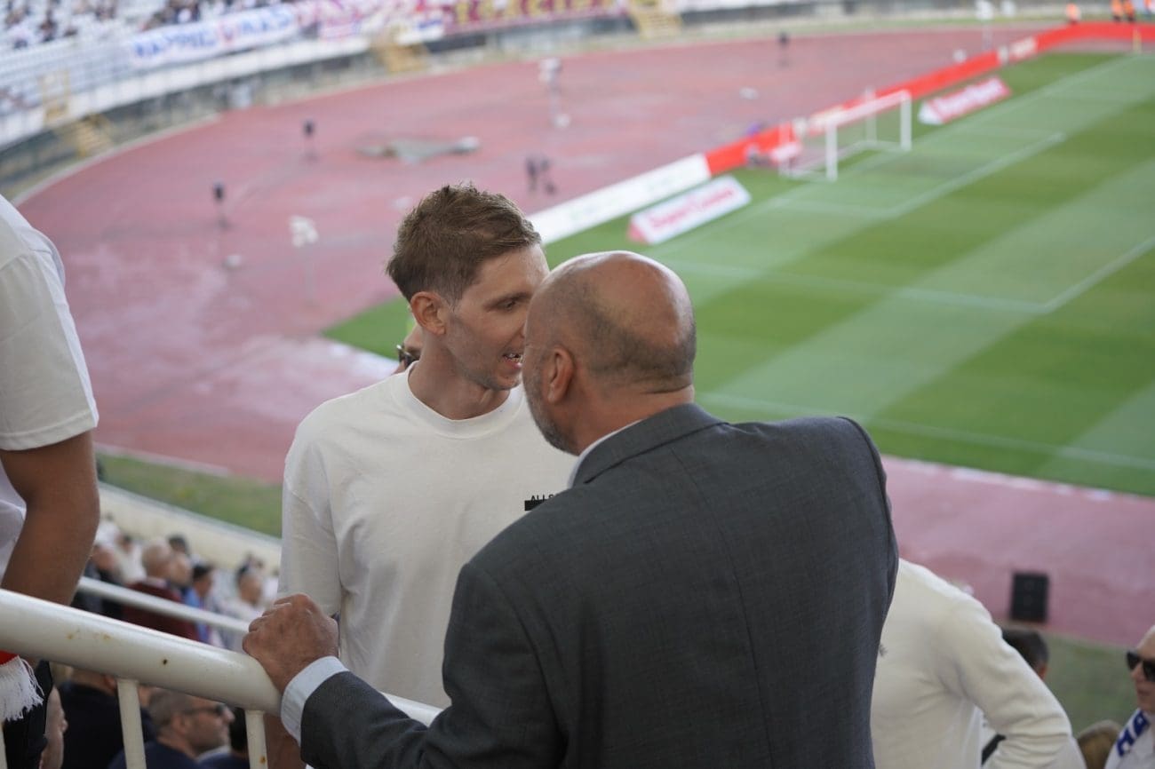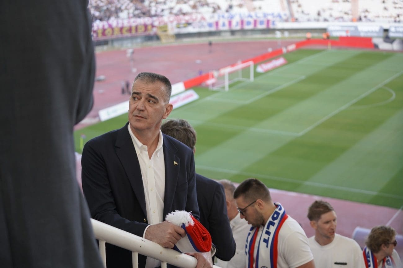 Prije samog početka susreta, Hajduk je dočekao nove-stare prvake hrvatskog vaterpola. Susjedi s poljudskih bazena, Jadranaši, pozdravljeni su pljeskom Poljuda predvođeni kapetanom i vatrenim navijačem Hajduka Jerkom Marinićem Kragićem uz pjesmu "Nek zazvone svetog Duje zvona".