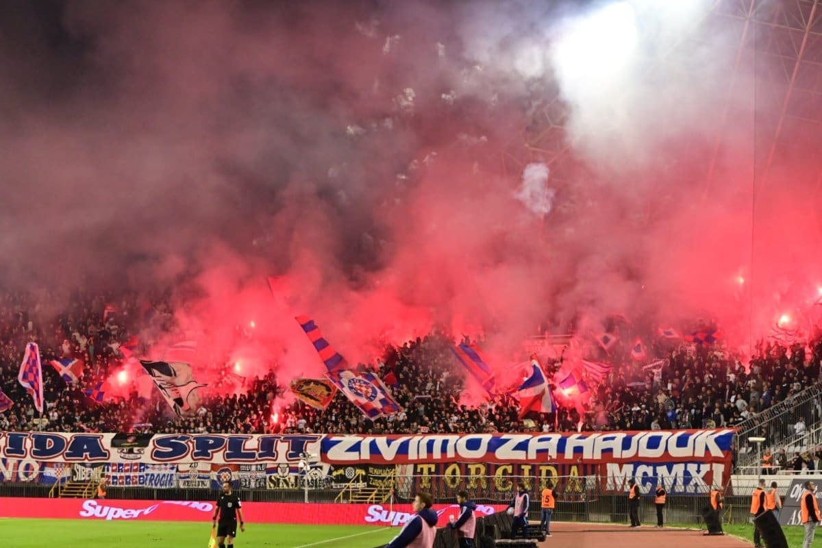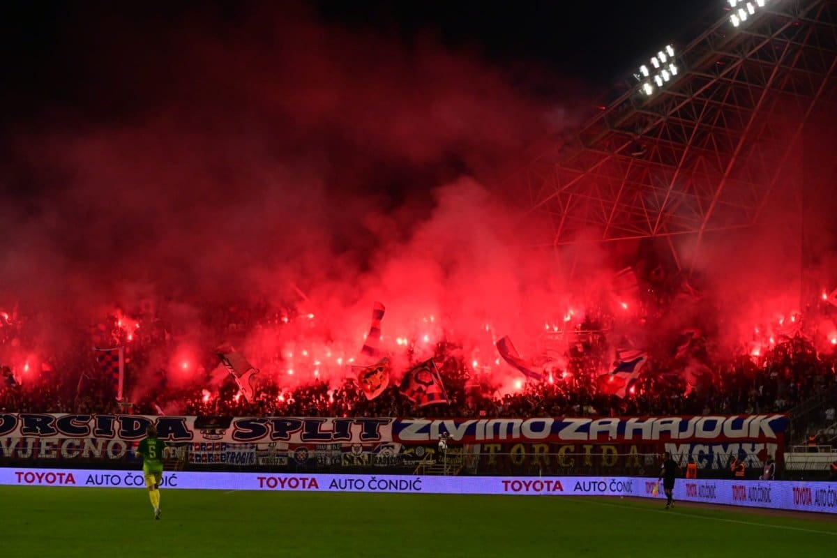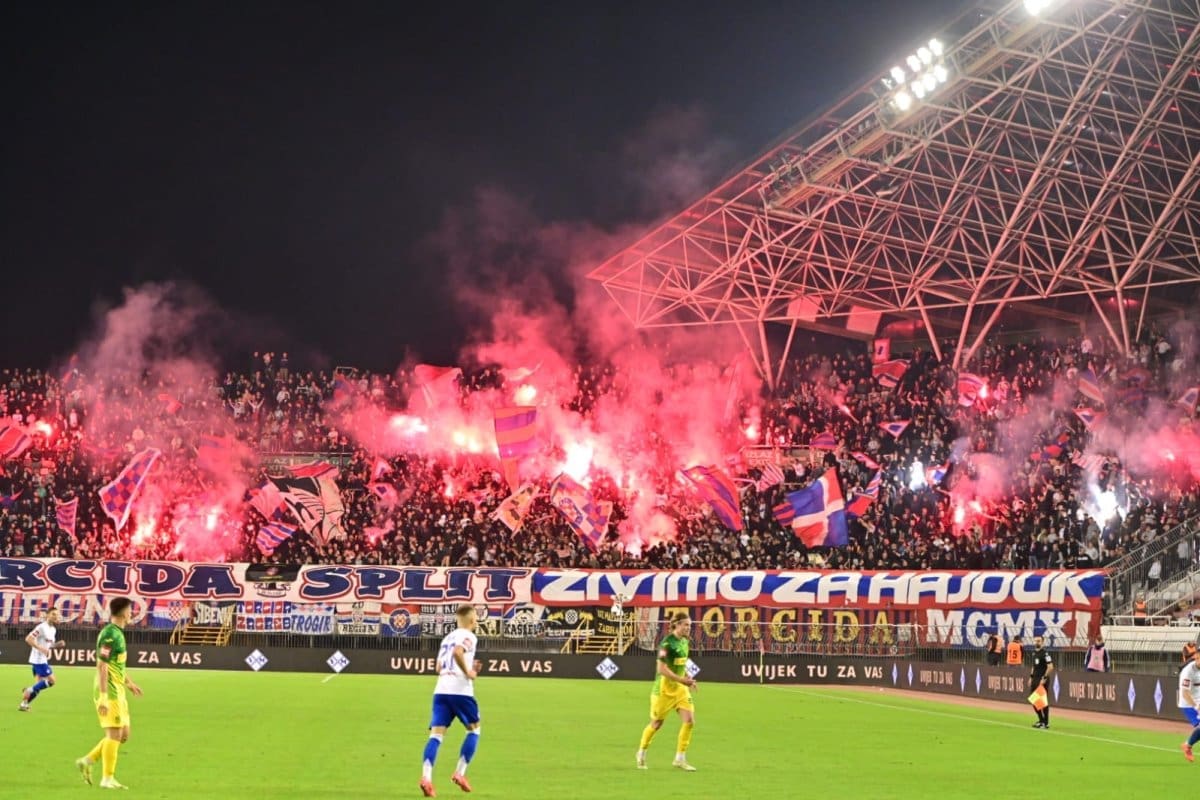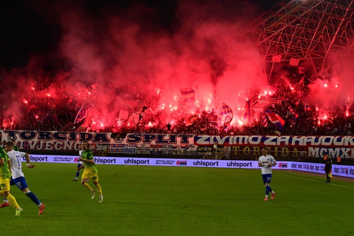 U 75. je minuti Torcida podignula atmosferu i temperaturu zapalivši baklje.