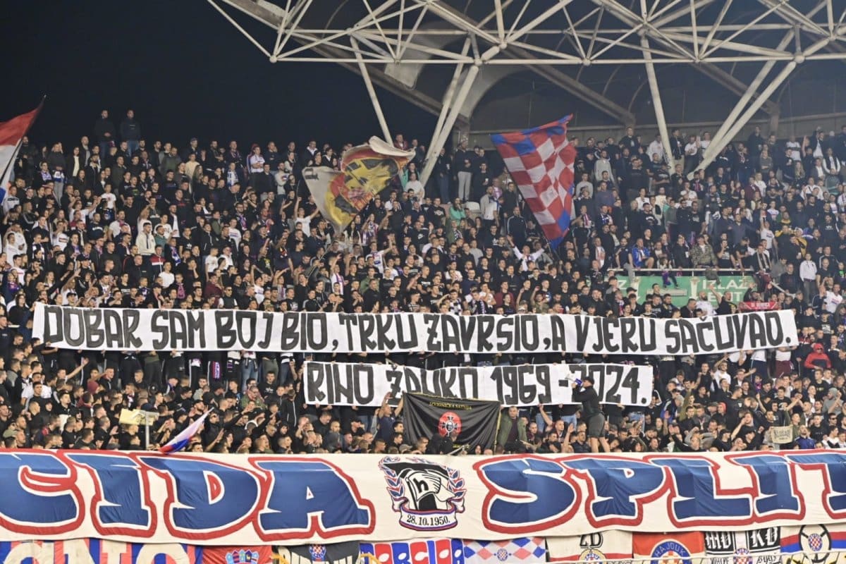 U 25. je minuti Torcida podignula poruku pripadniku 4. gardijske brigade „DOBAR SAM BOJ BIO, TRKU ZAVRŠIO, A VJERU SAČUVAO.